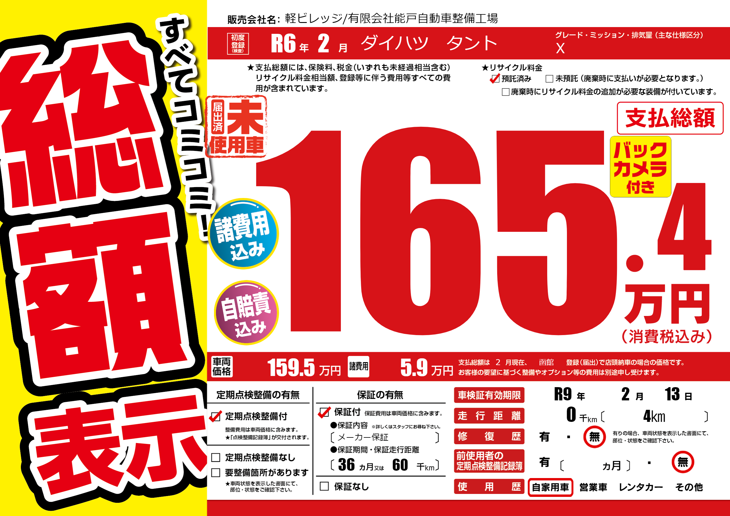 | 走行キロ | - | 初年度登録 | R6年2月 |