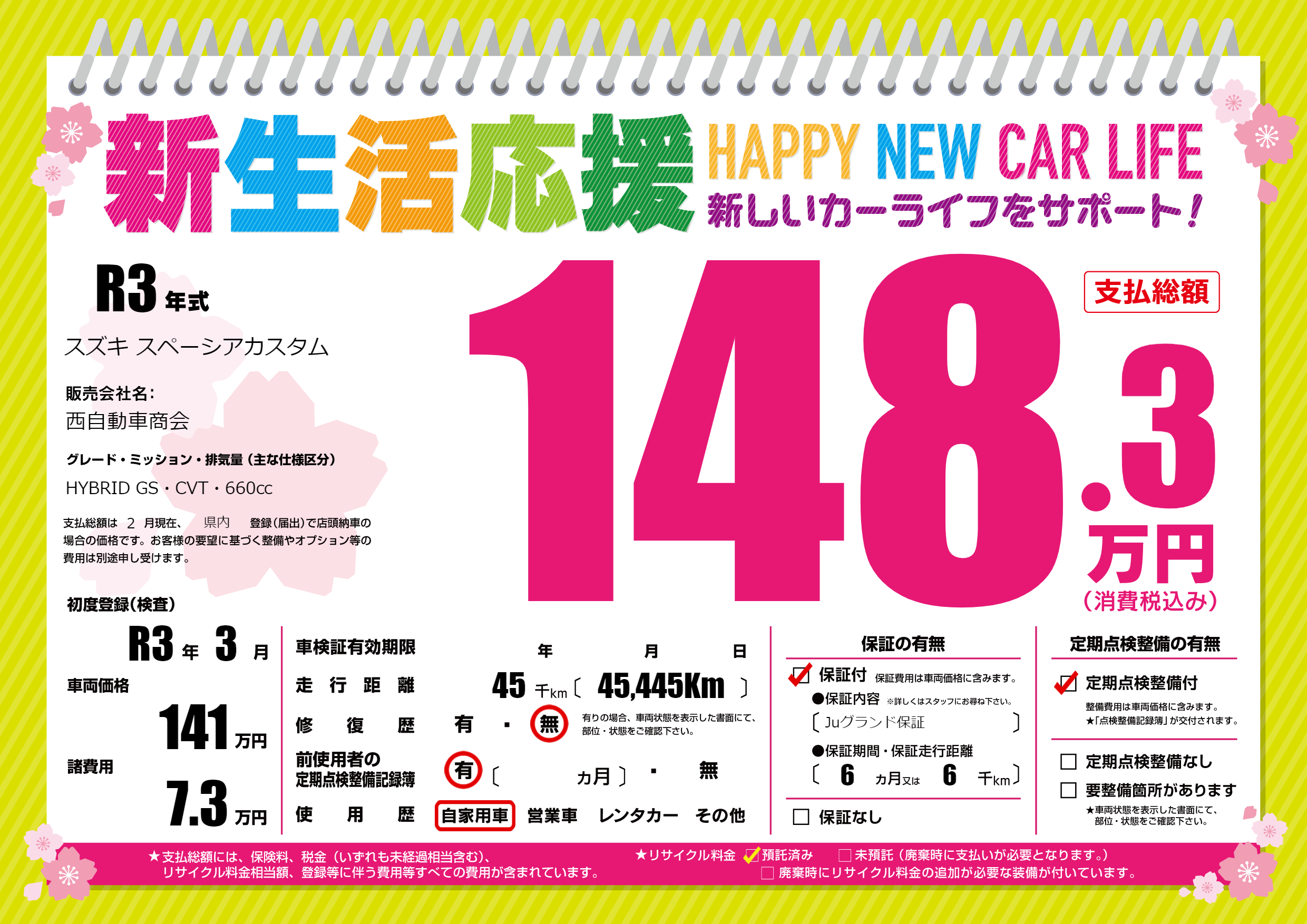 | 定期点検整備 | 定期点検整備あり | ||