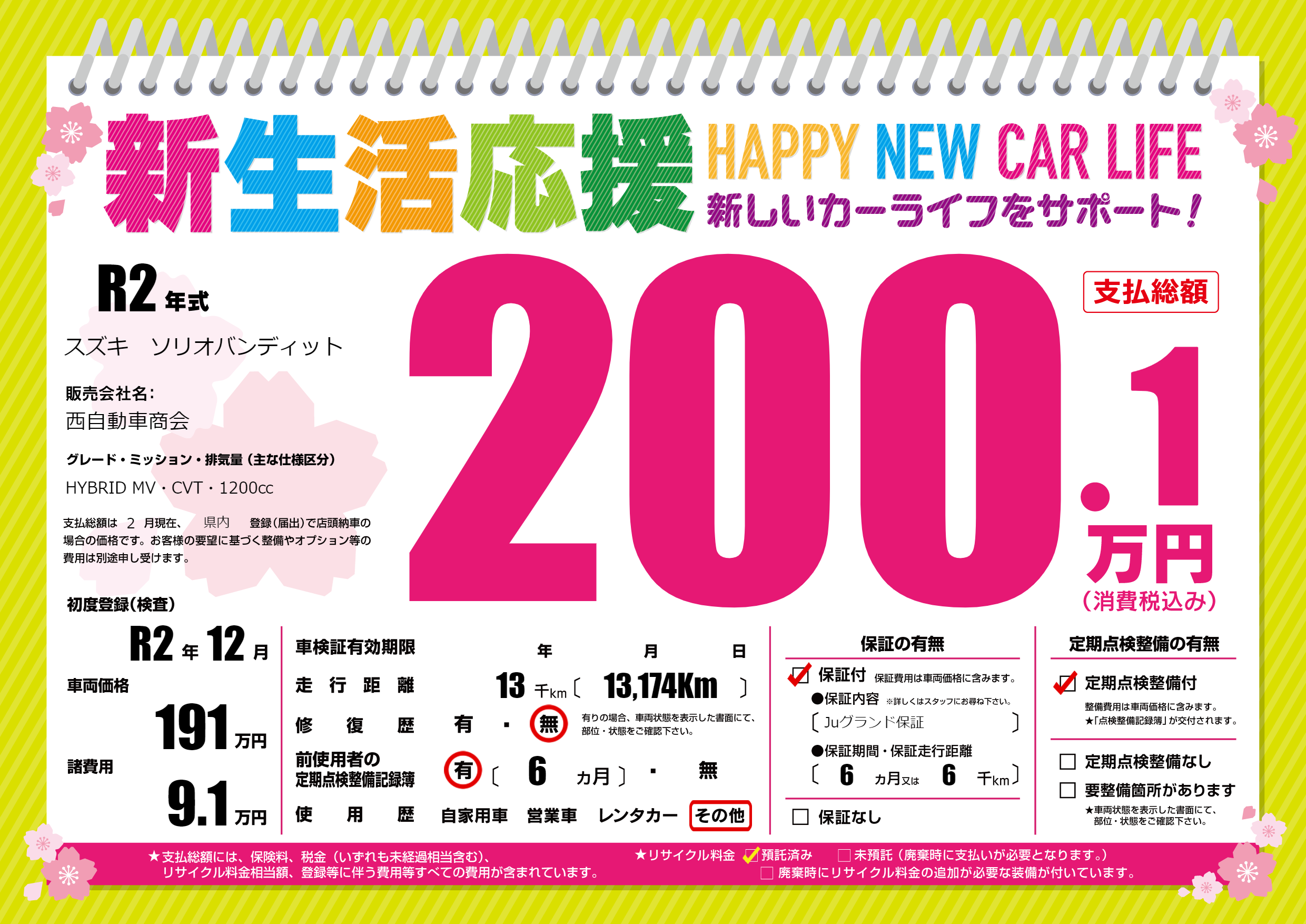 | 定期点検整備 | 定期点検整備あり | ||