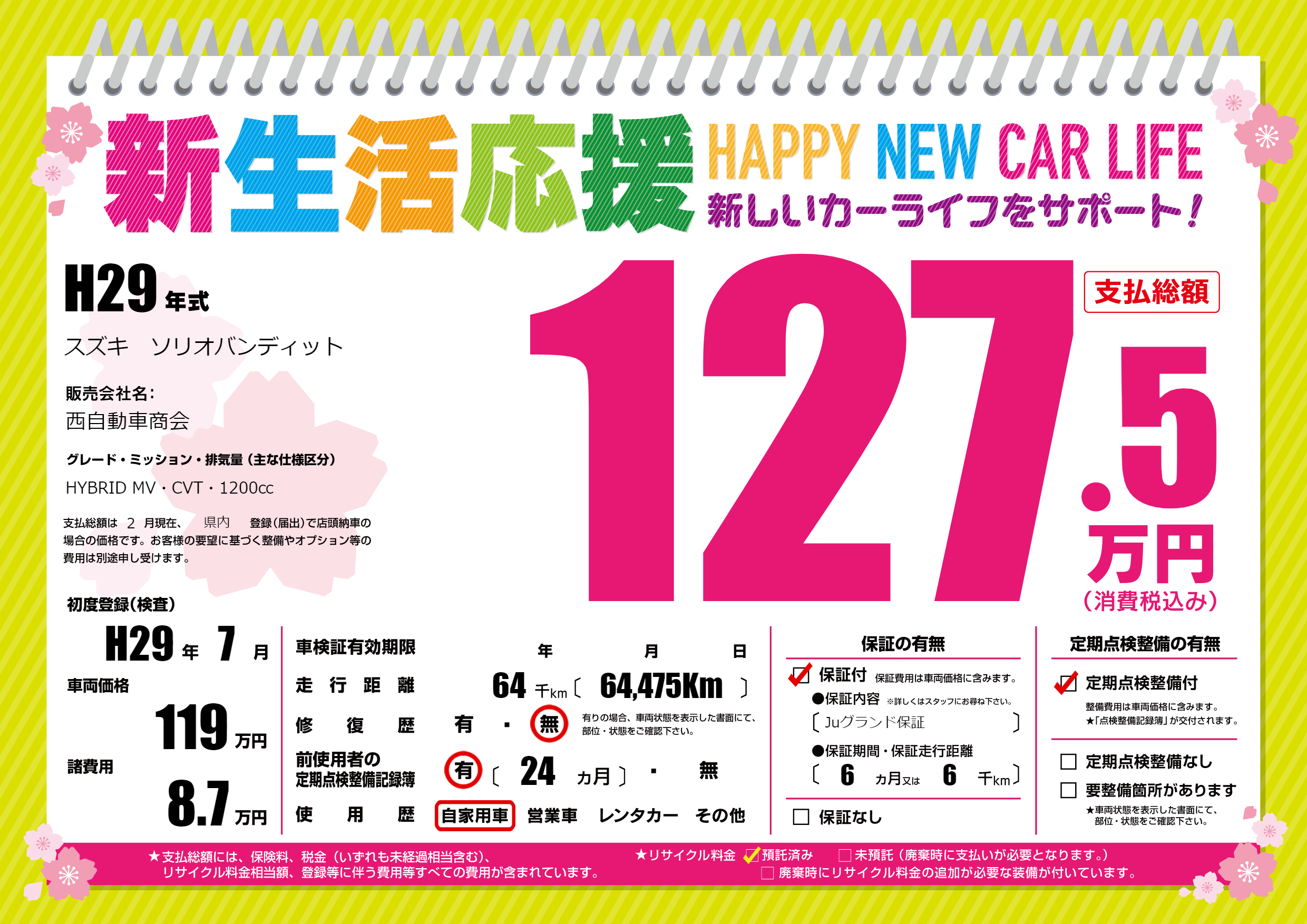 | 車名 | スズキ ソリオバンディット | グレード ミッション 排気量 |