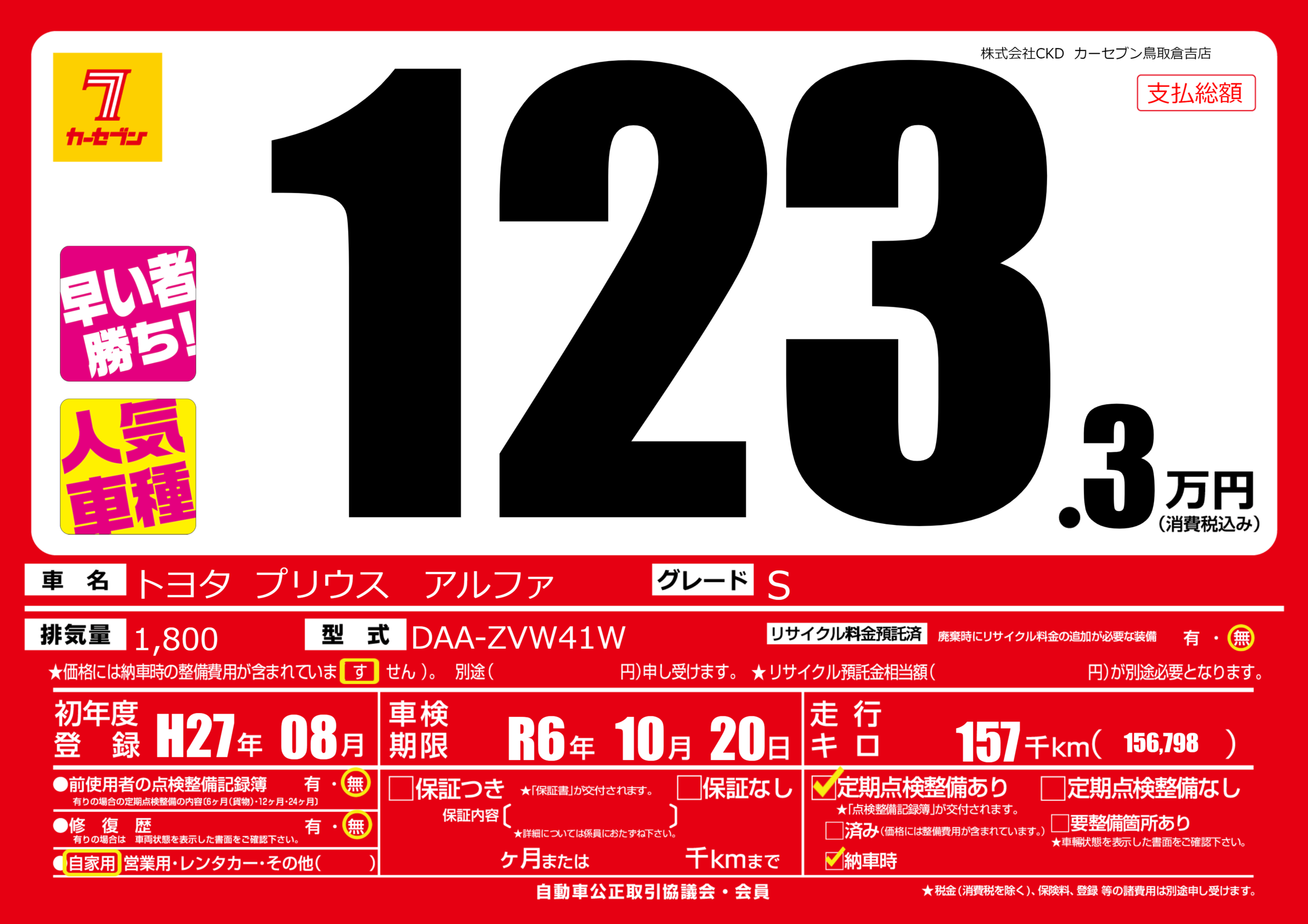 カーセブン鳥取倉吉店の展示車をすべて見る