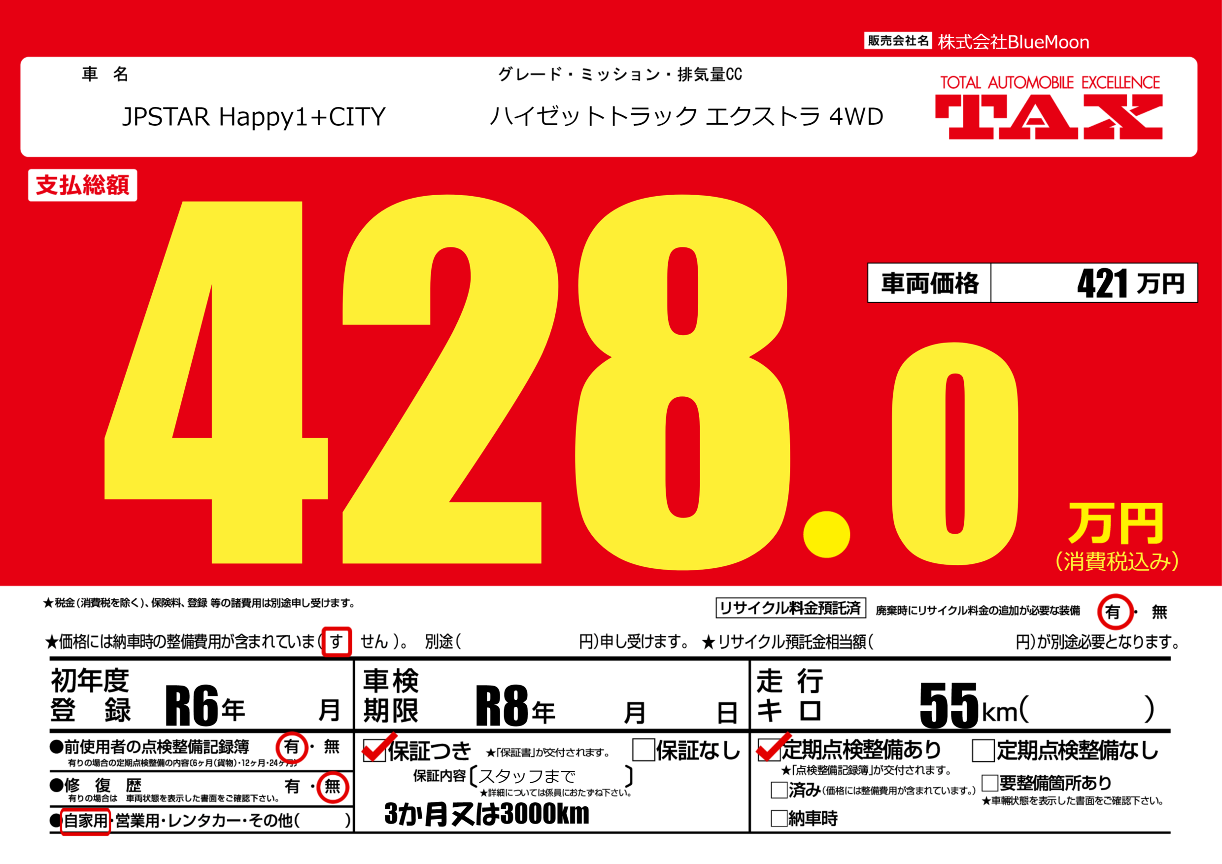 | 車名 | JPSTAR Happy1+CITY | グレード ミッション 排気量 |