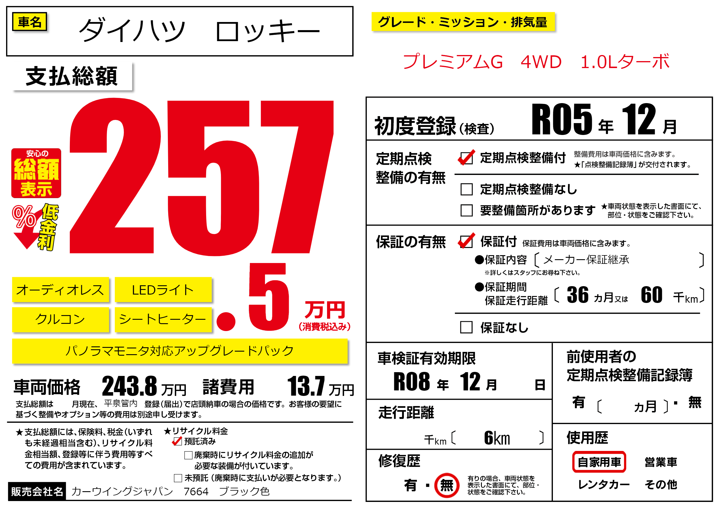 | 車検制限 | R08年 12月 - 日 | ||