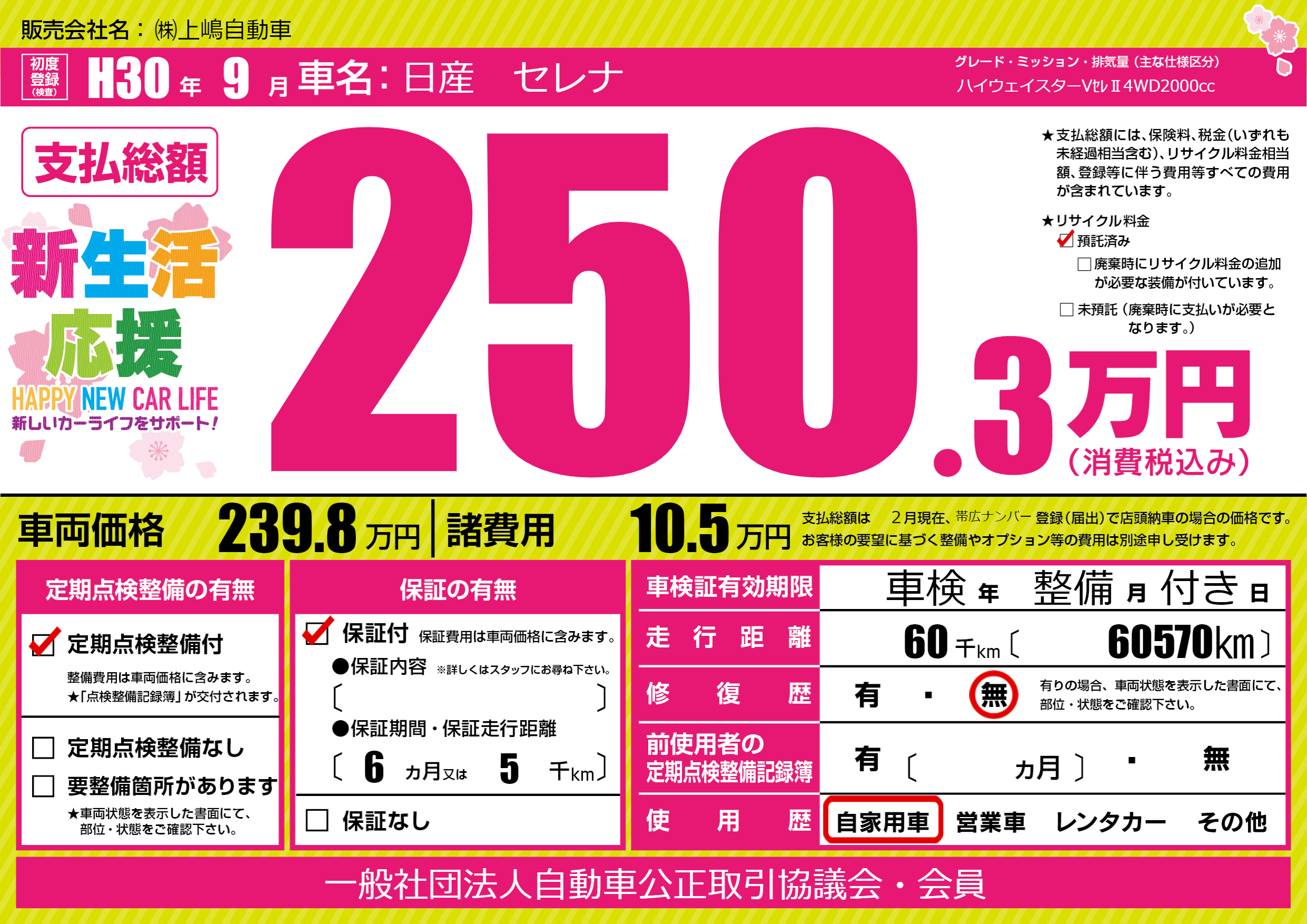 | 定期点検整備 | 定期点検整備あり | ||
