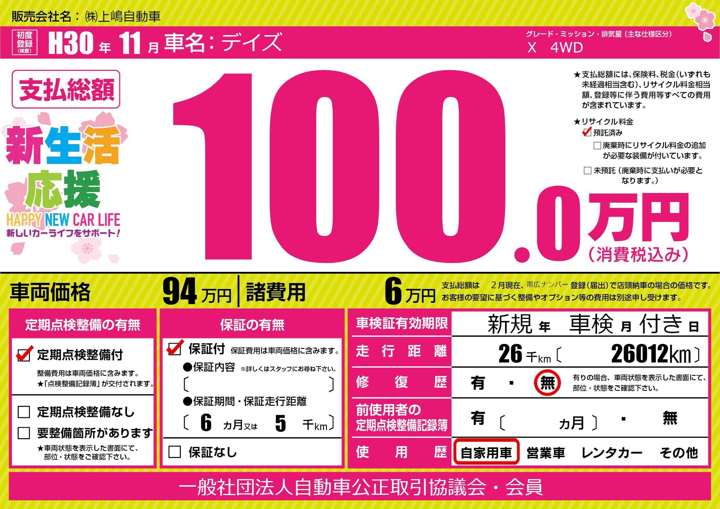 保証付き 保証内容(---) 6ヶ月または(5)千kmまで |