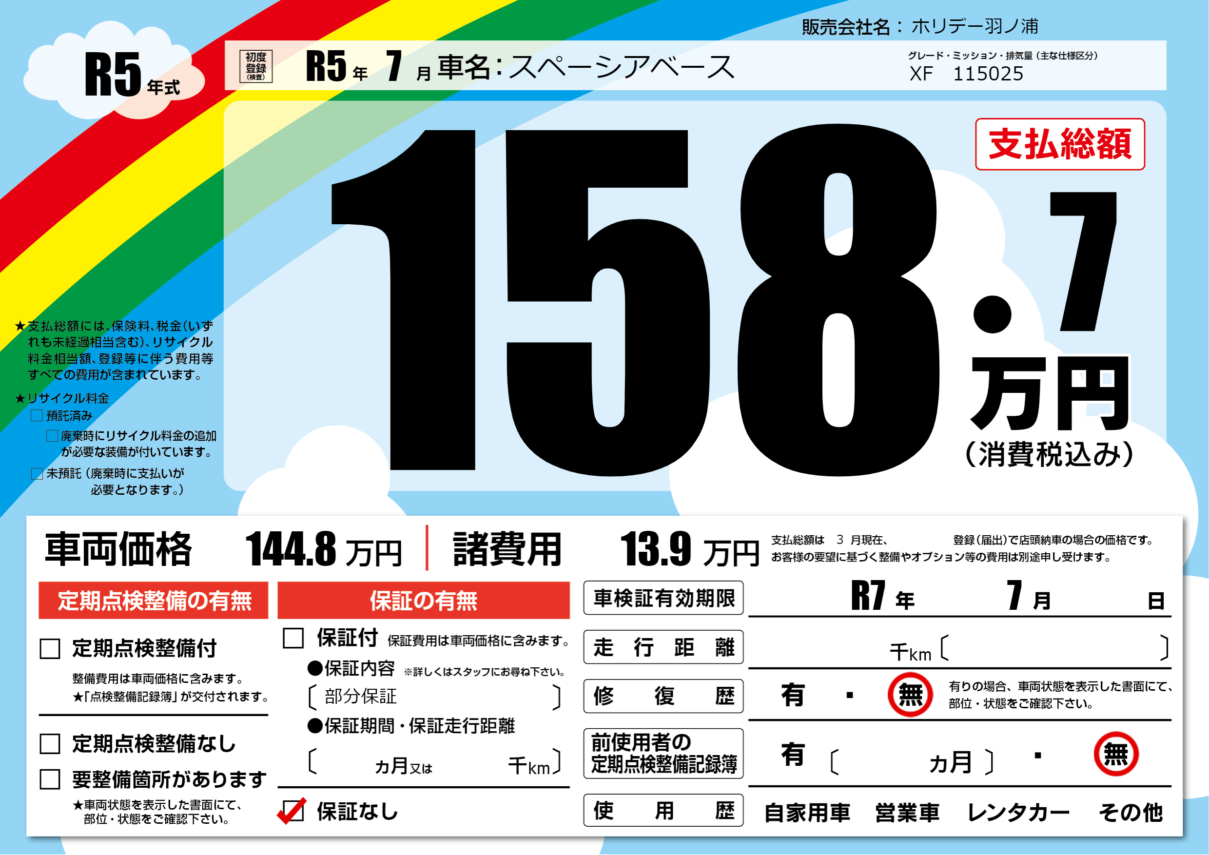 | 車名 | スペーシアベース | グレード ミッション 排気量 |