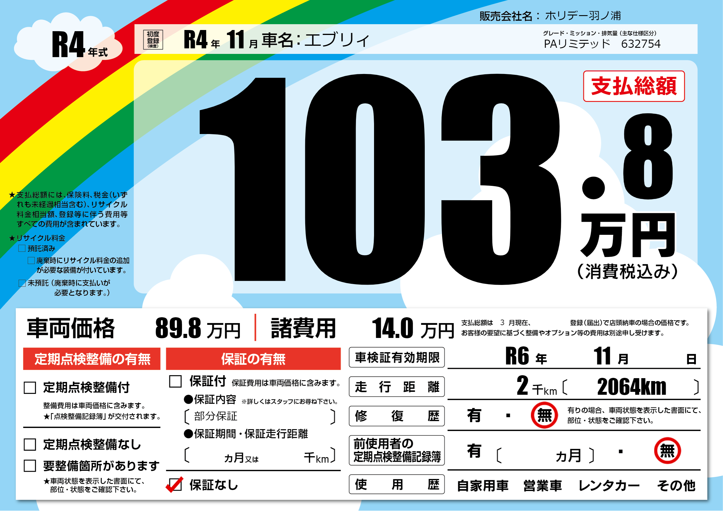 | 車名 | エブリィ | グレード ミッション 排気量 |