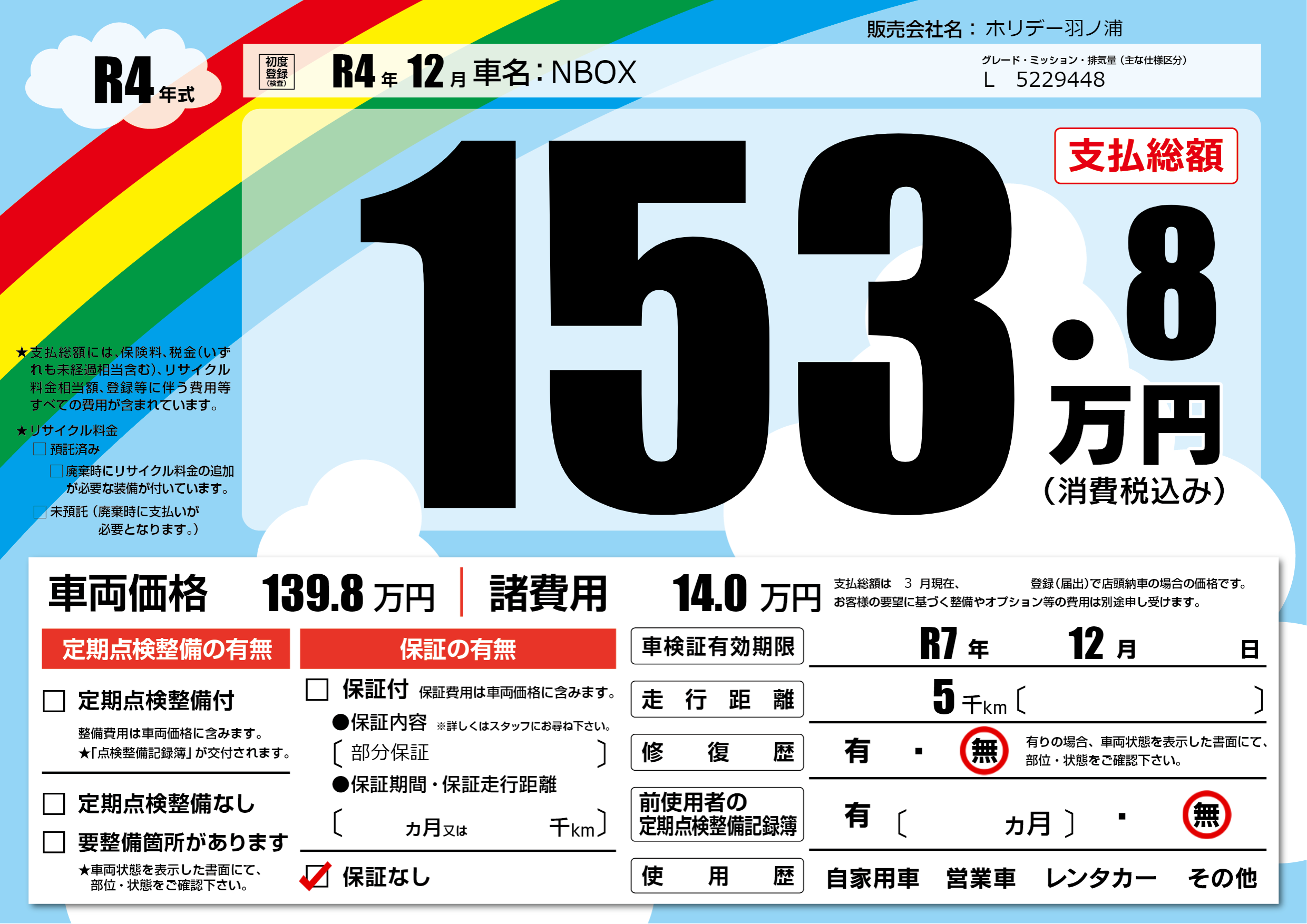 なし | 車検制限 | R7年12月---月 |