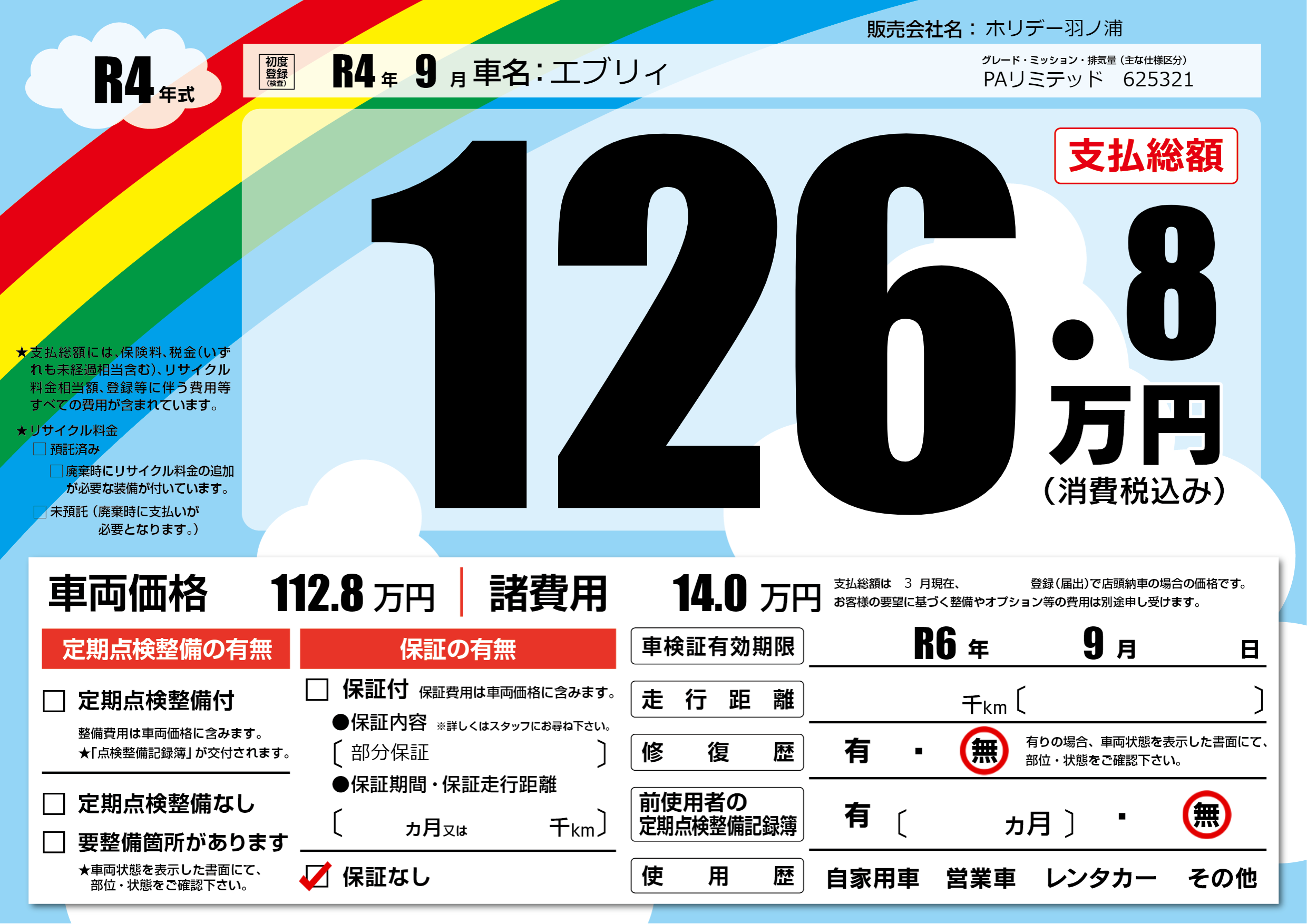 | 車名 | エブリィ | グレード ミッション 排気量 |