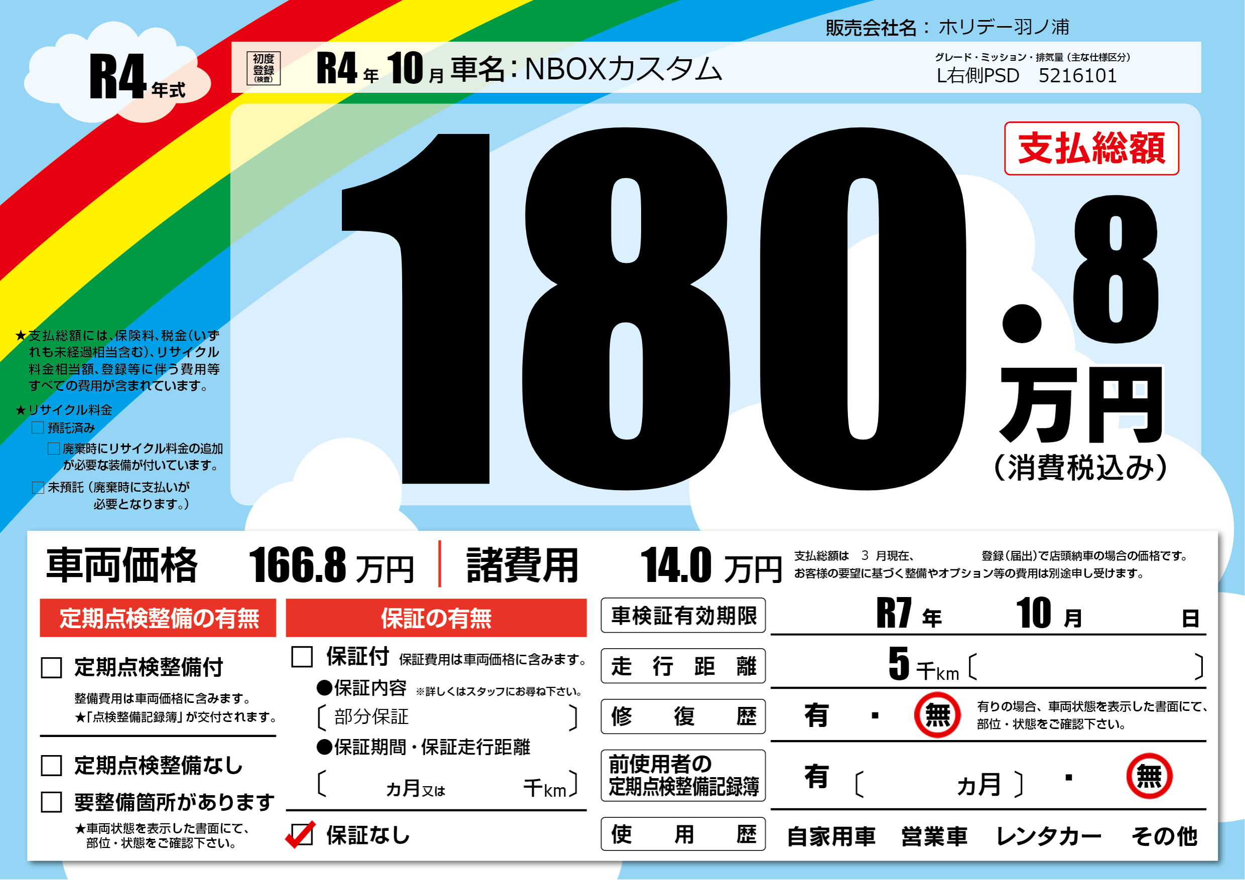 | 車名 | NBOXカスタム | グレード ミッション 排気量 |