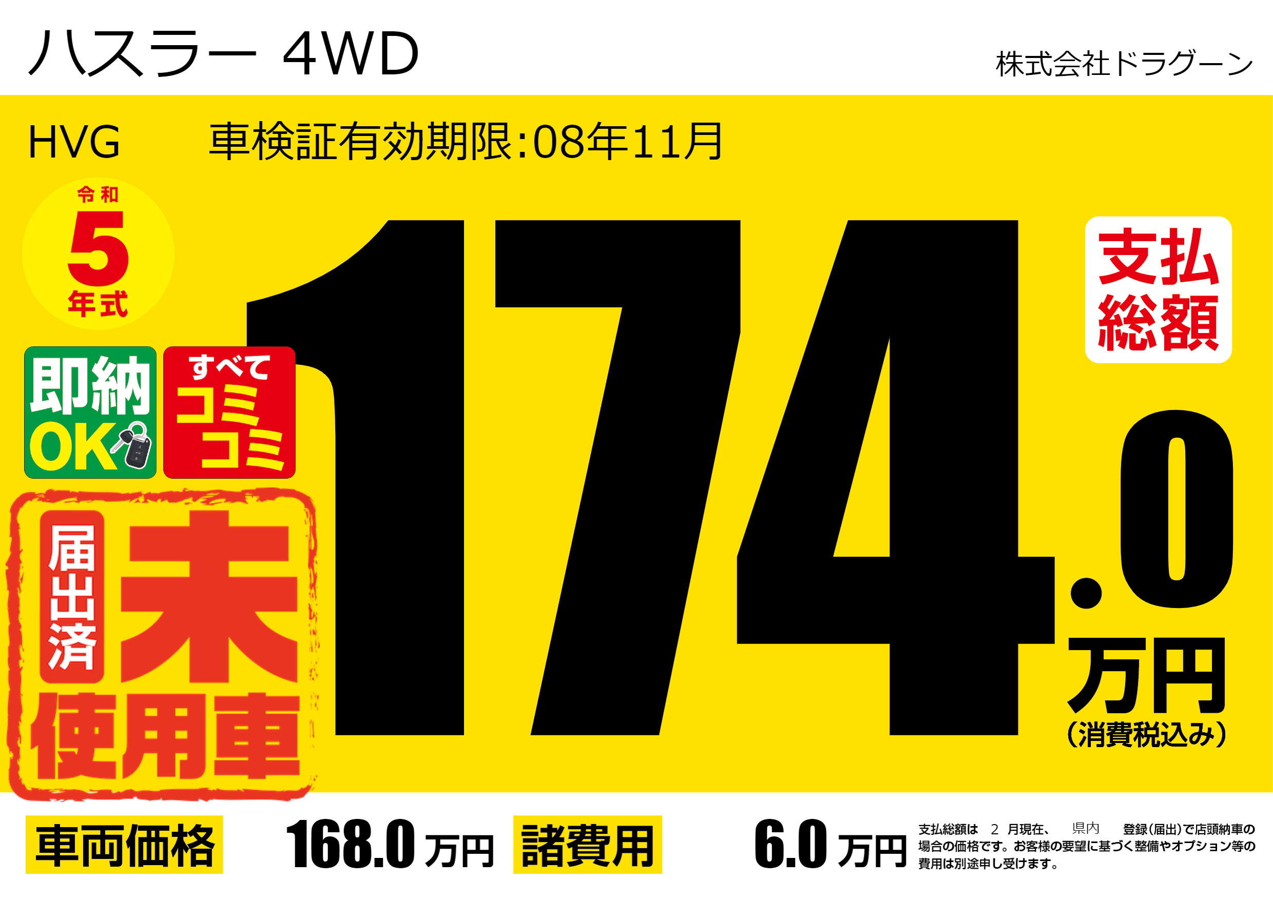 | 車名 | ハスラー 4WD | グレード ミッション 排気量 |