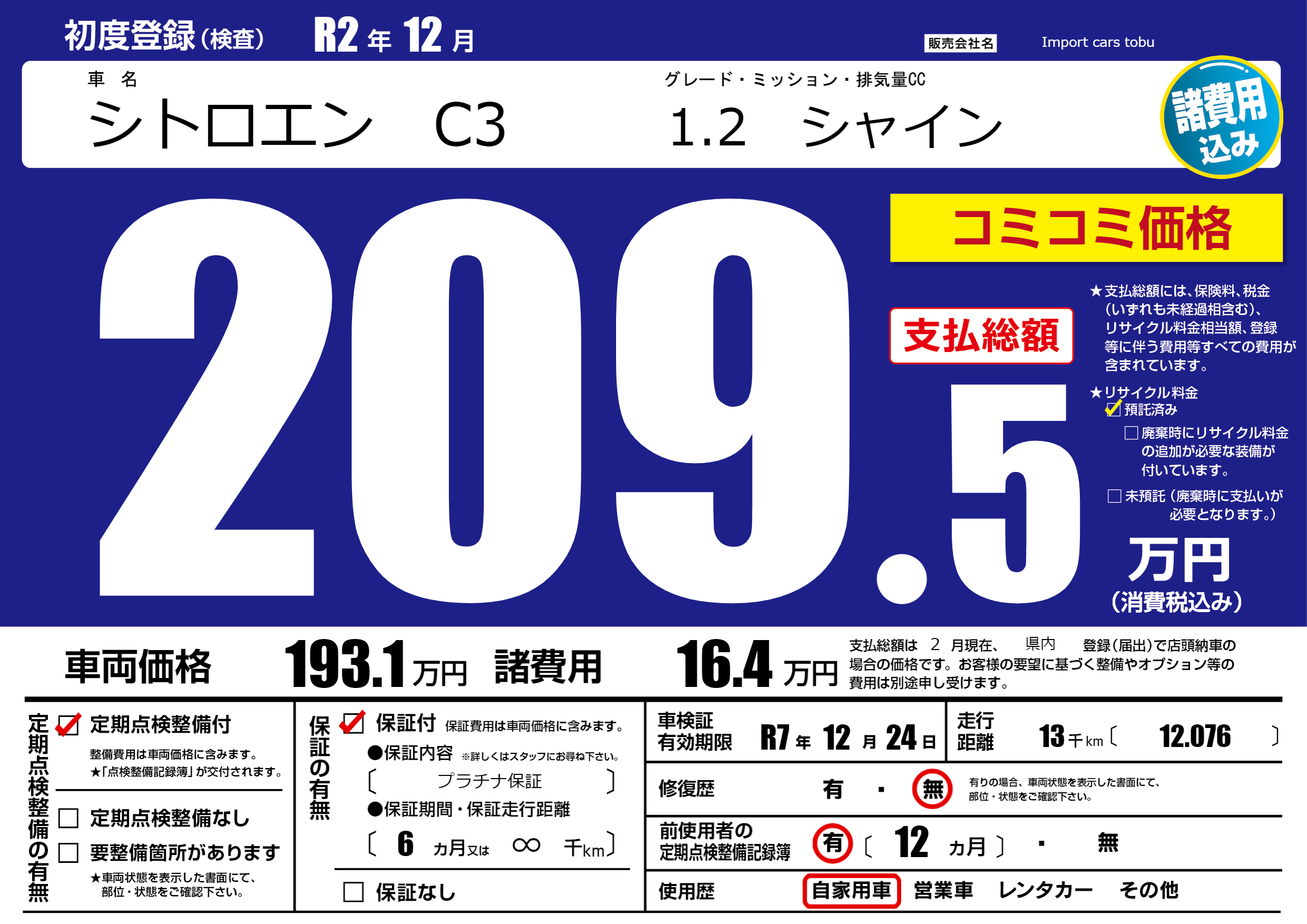 | 定期点検整備 | 定期点検整備あり | ||