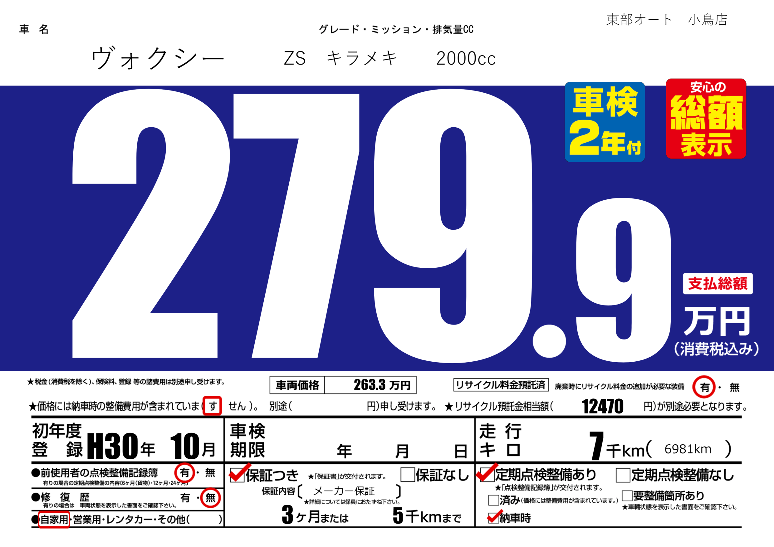 | 車名 | ヴォクシー | グレード ミッション 排気量 |