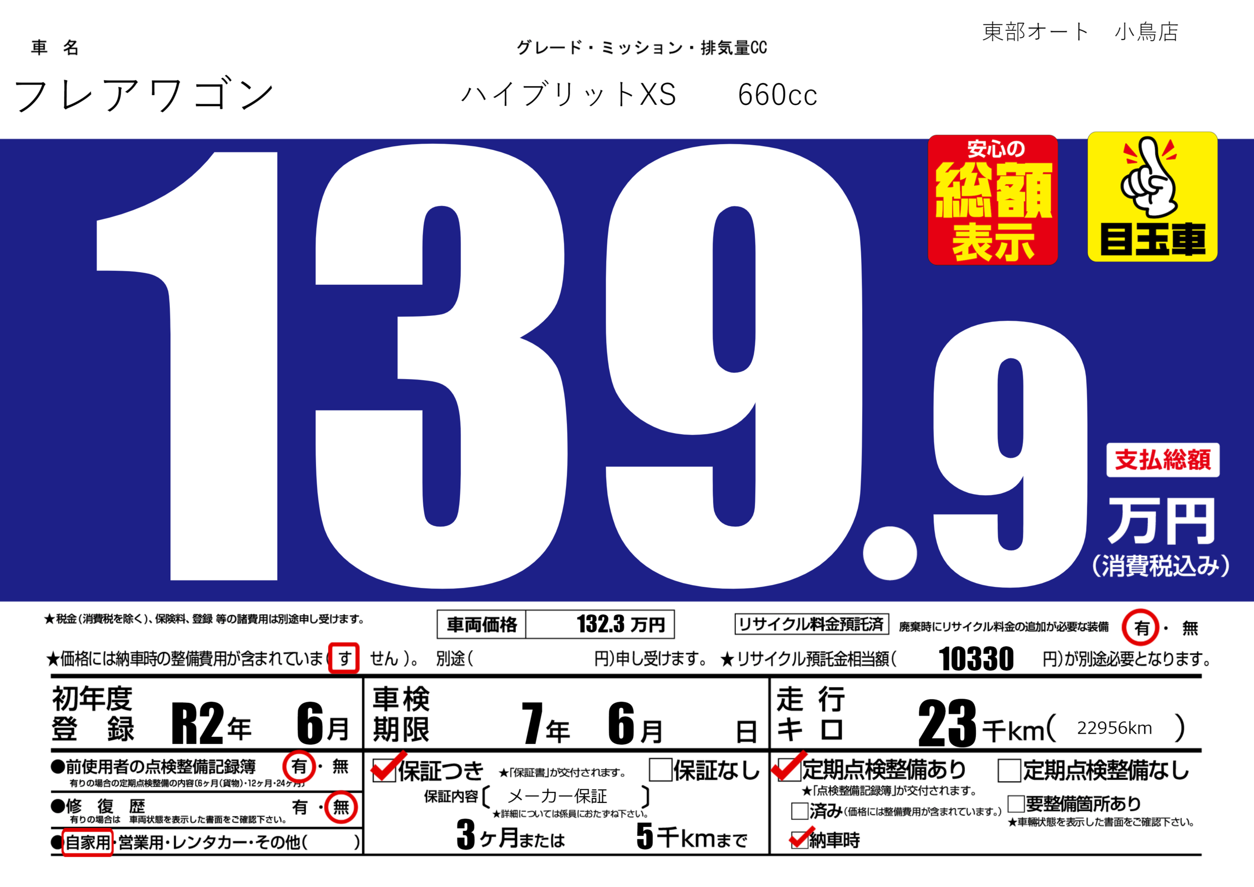 | 車名 | フレアワゴン | グレード ミッション 排気量 |