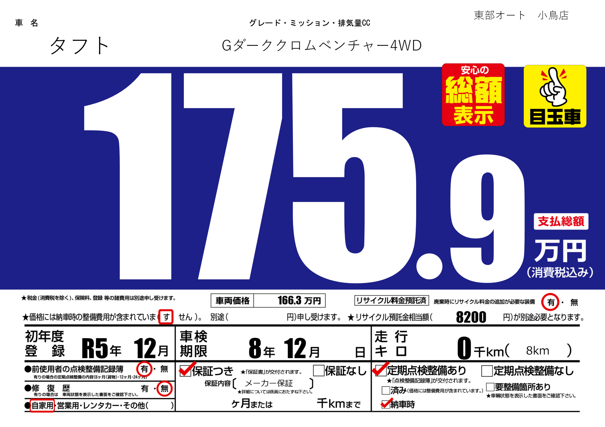 保証付き 保証内容( メーカー保証) ---ヶ月または()千kmまで |