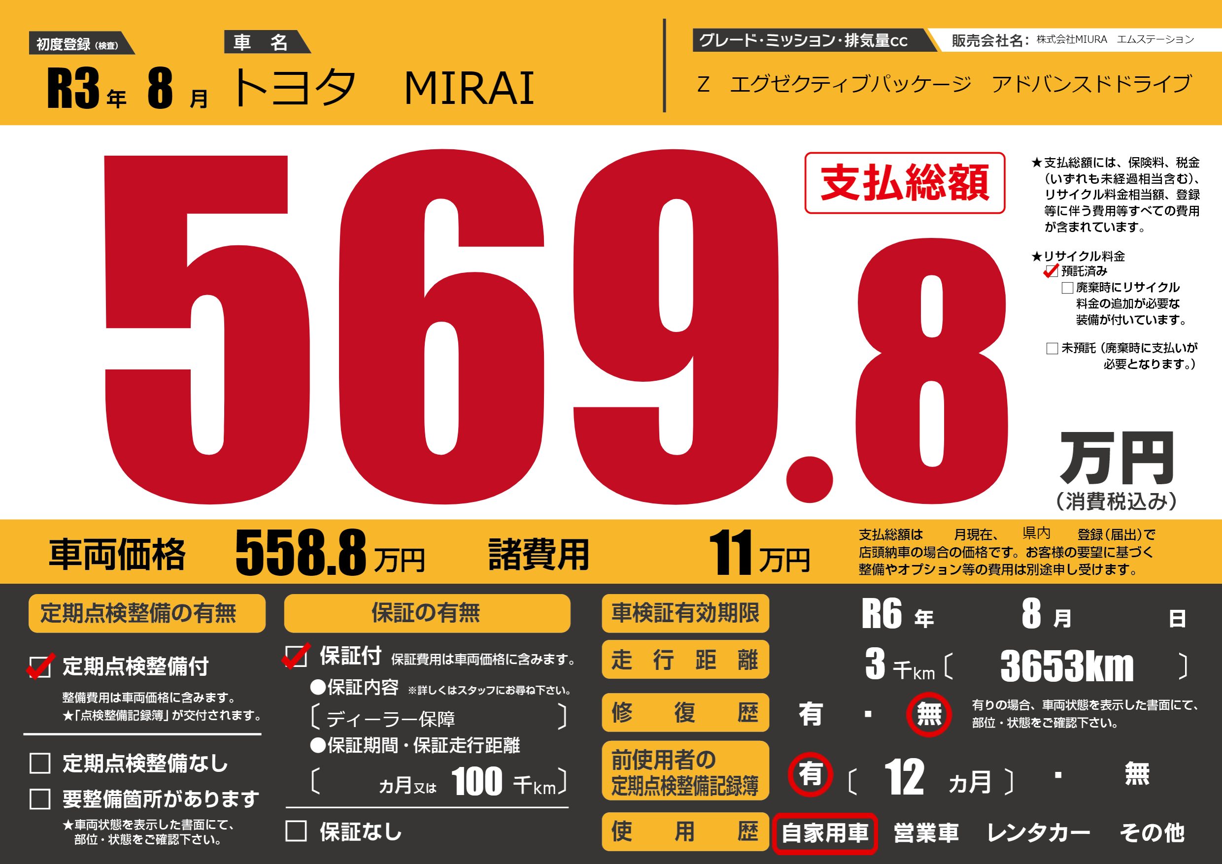 | 走行キロ | 0.3万km | 初年度登録 | R3年8月 |