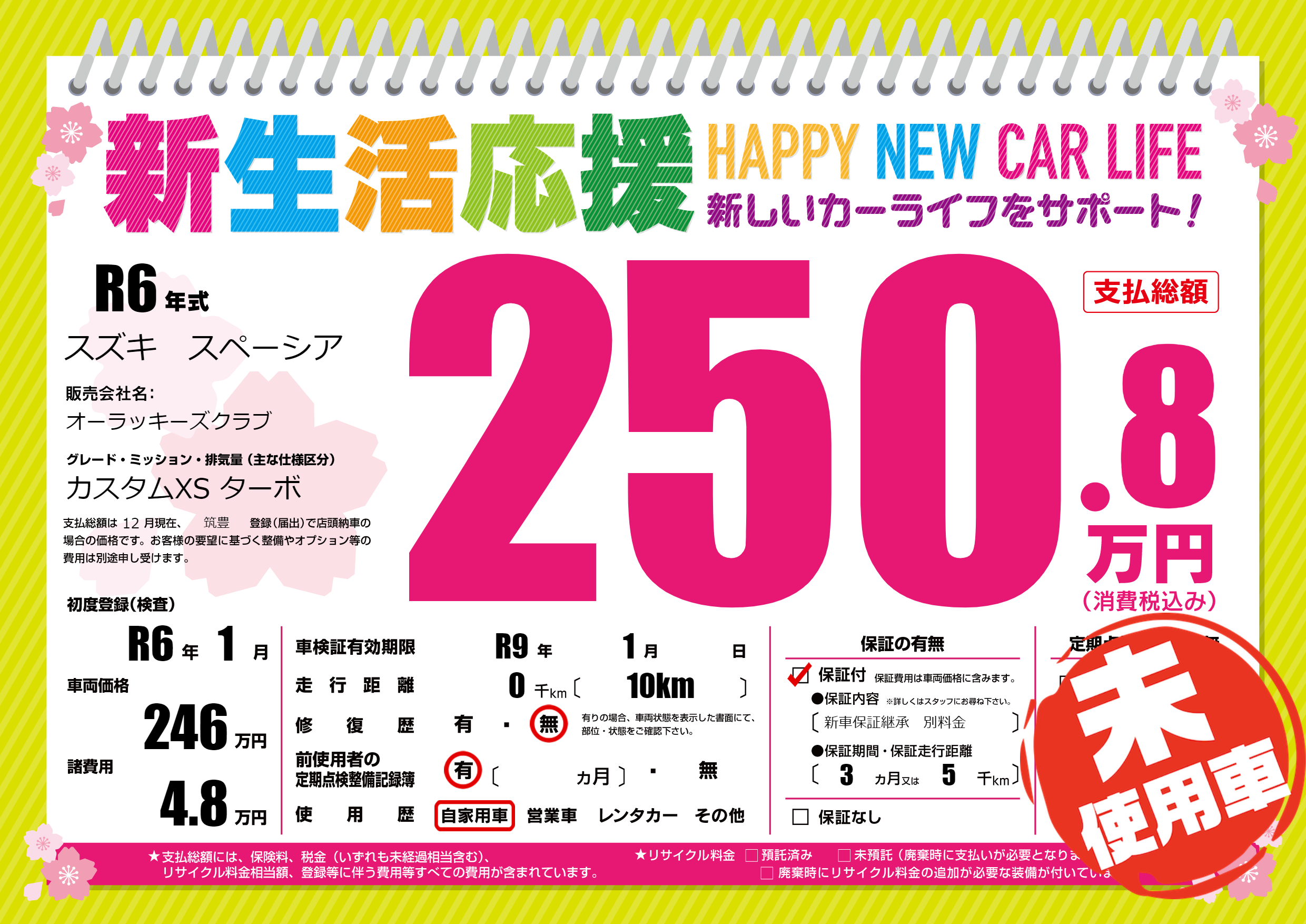 | 車検制限 | R9年 1月 - 日 | ||