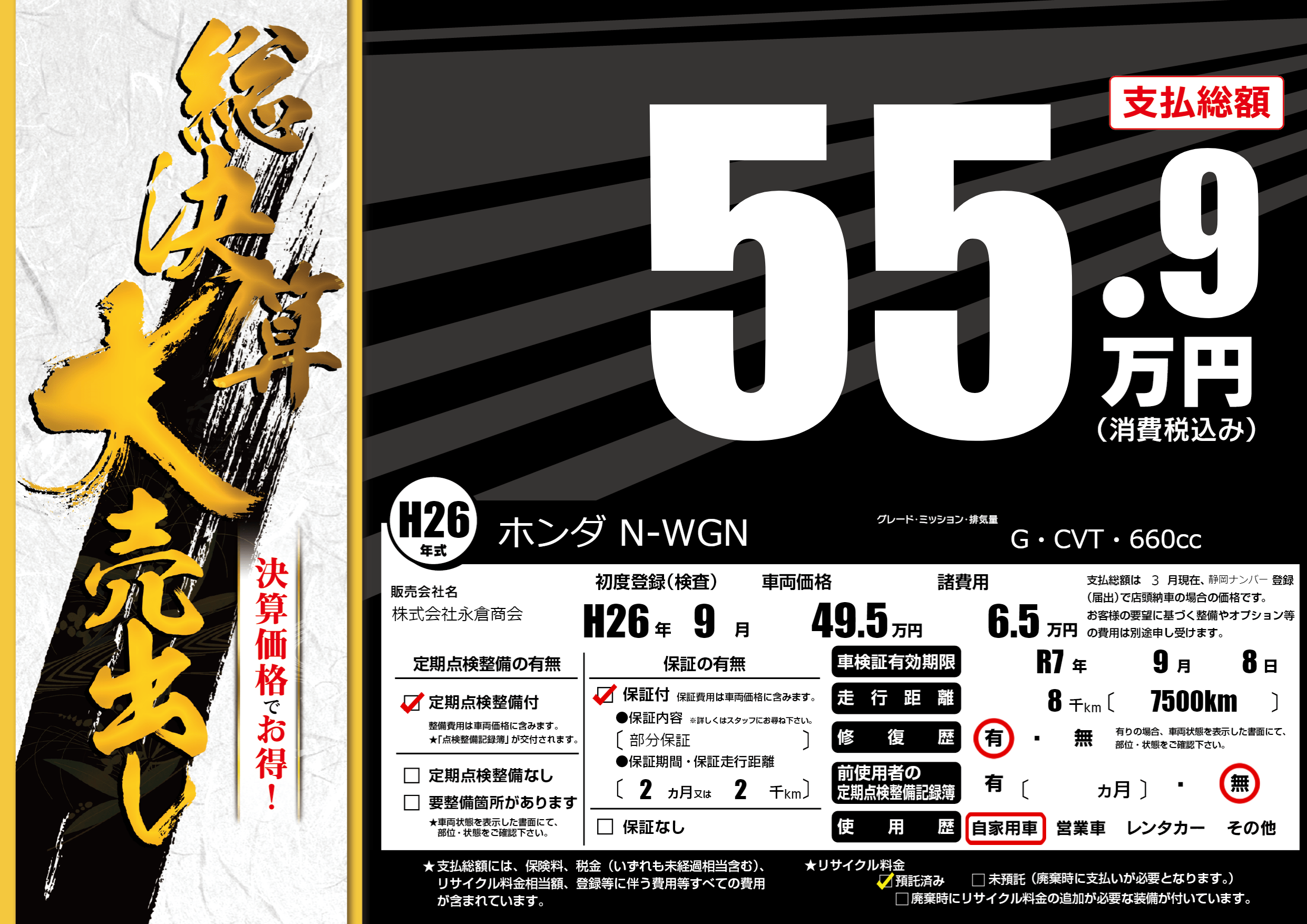 | 車名 | ホンダ N-WGN | グレード ミッション 排気量 |