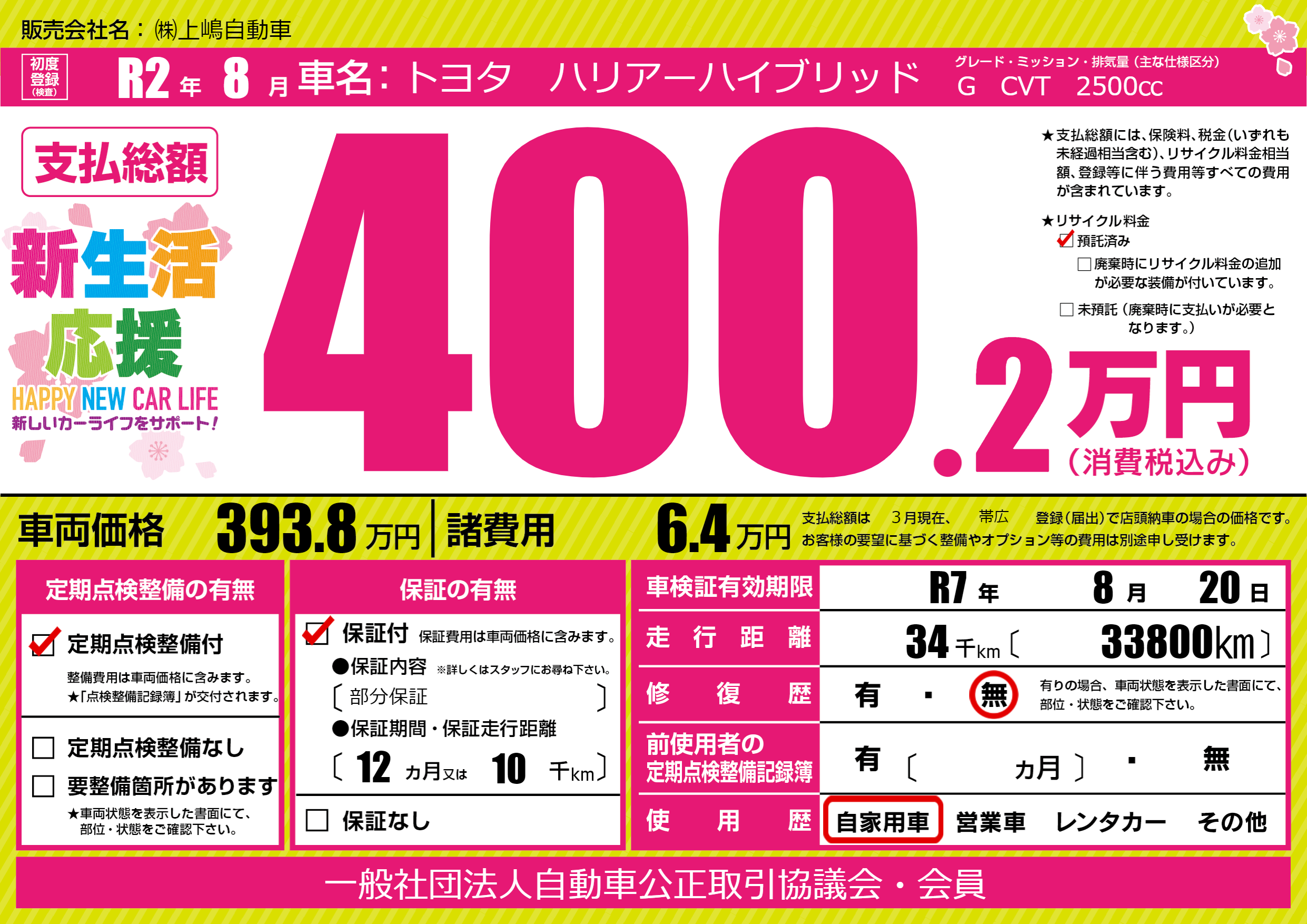| 車検制限 | R7年 8月 20日 | ||