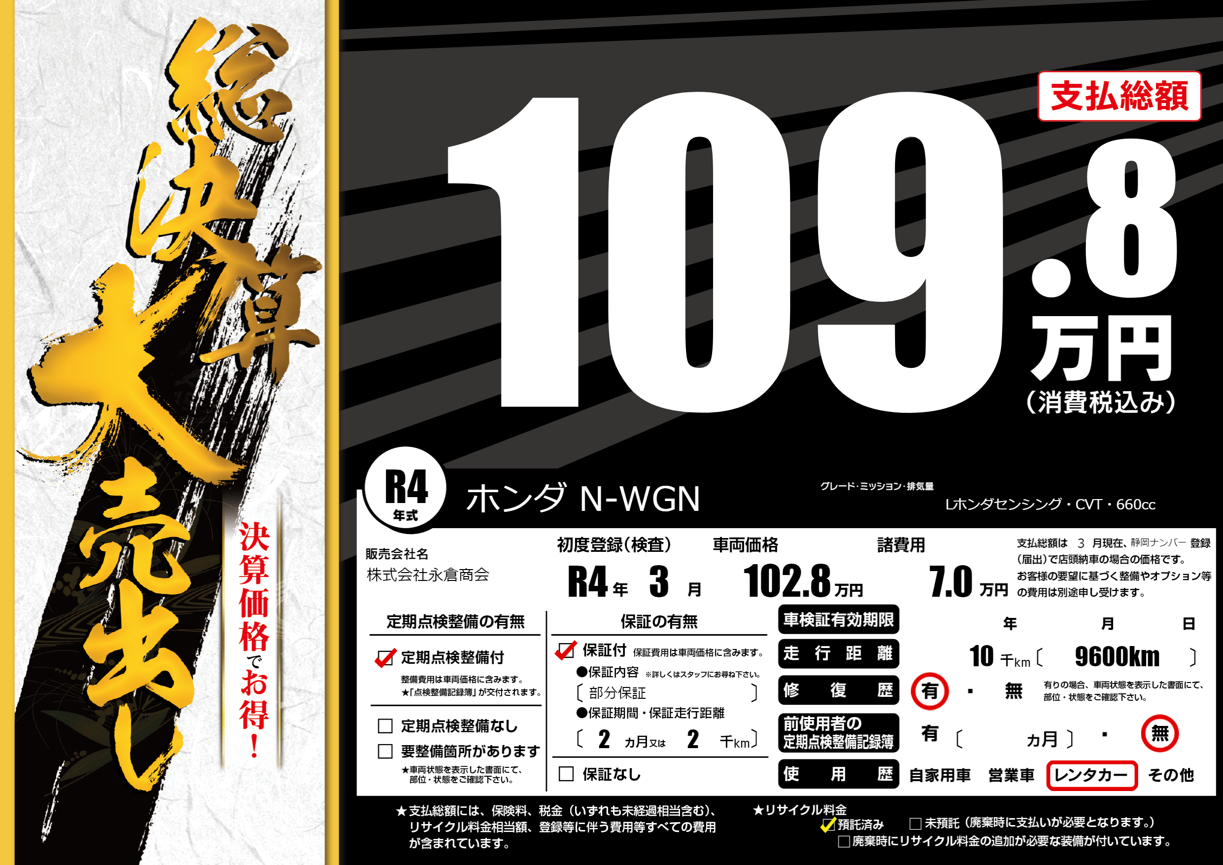 | 走行キロ | 1万km | 初年度登録 | R4年3月 |
