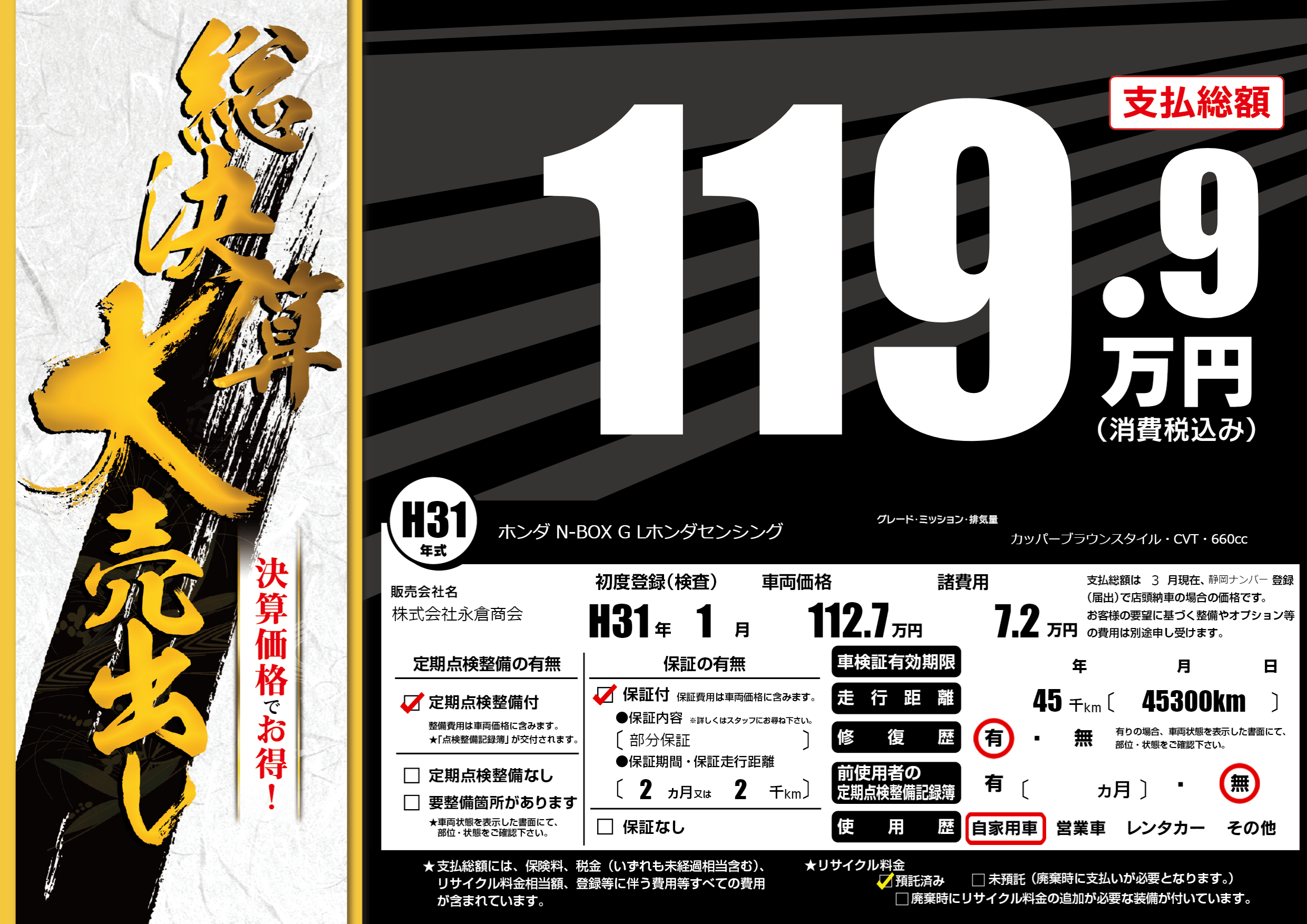| 定期点検整備 | 定期点検整備あり | ||