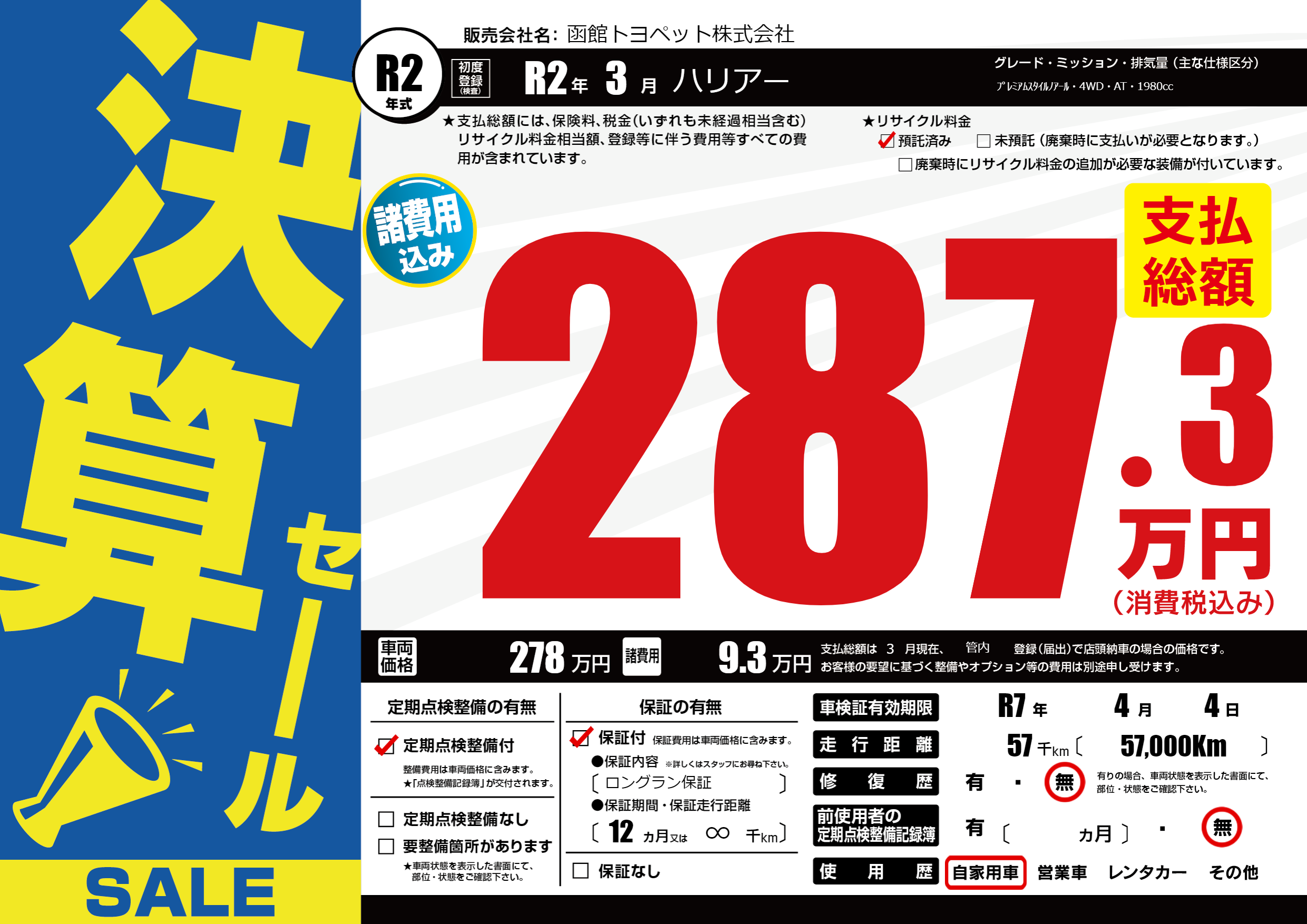 | 車検制限 | R7年 4月 4日 | ||