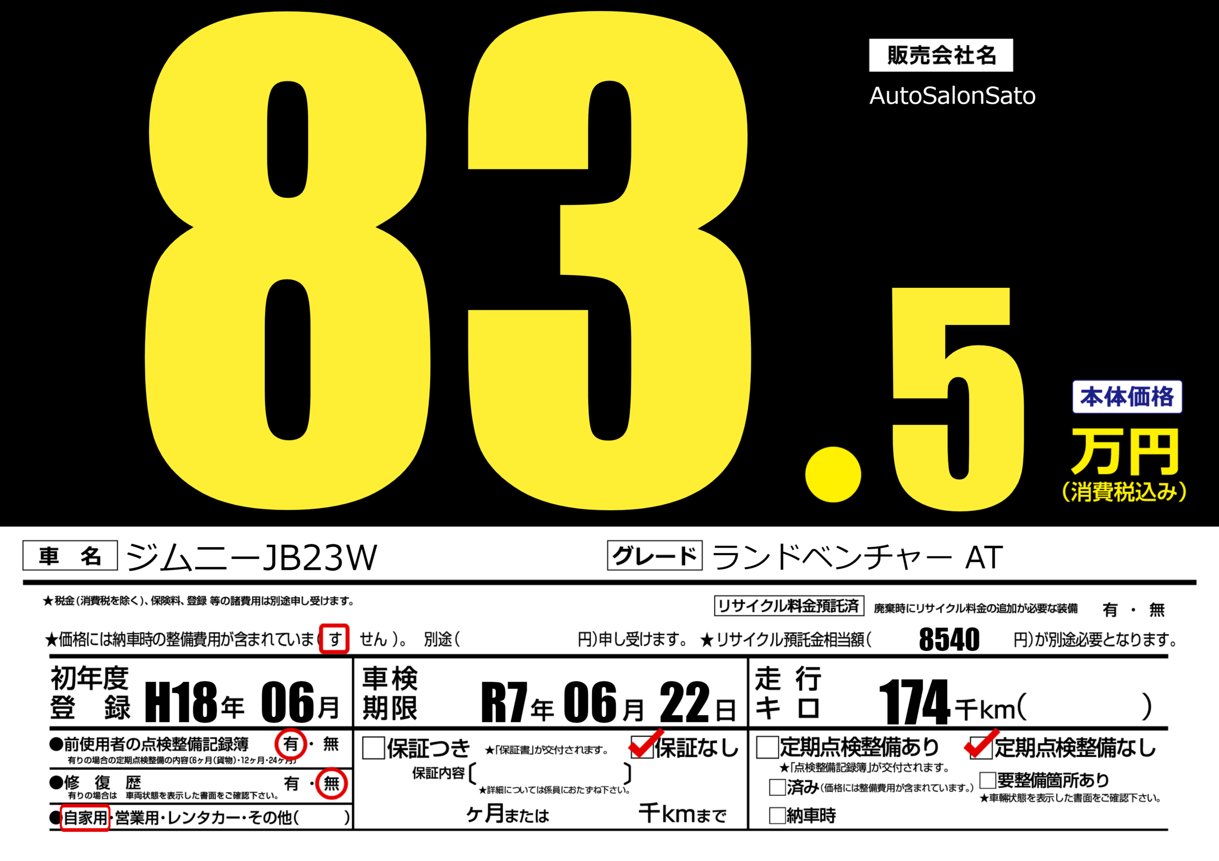 | 車検制限 | R7年 06月 22日 | ||