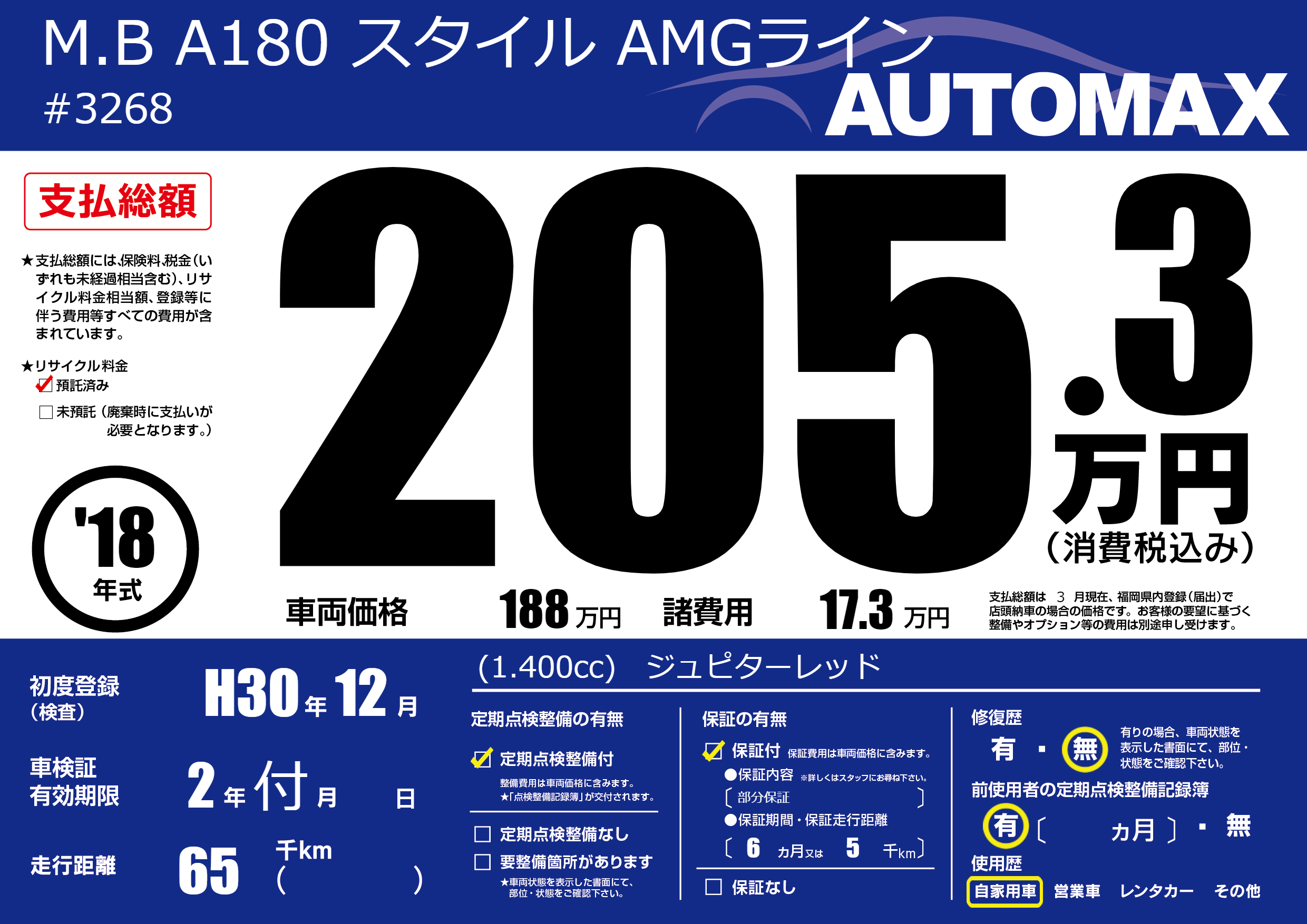| 初年度登録 | H30年12月 | ||