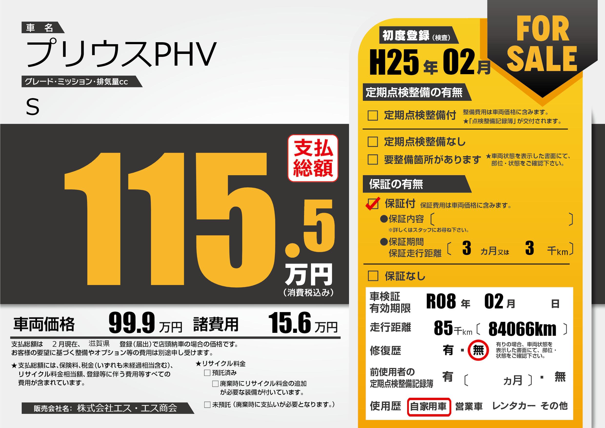 | 車検制限 | R08年 02月 - 日 | ||