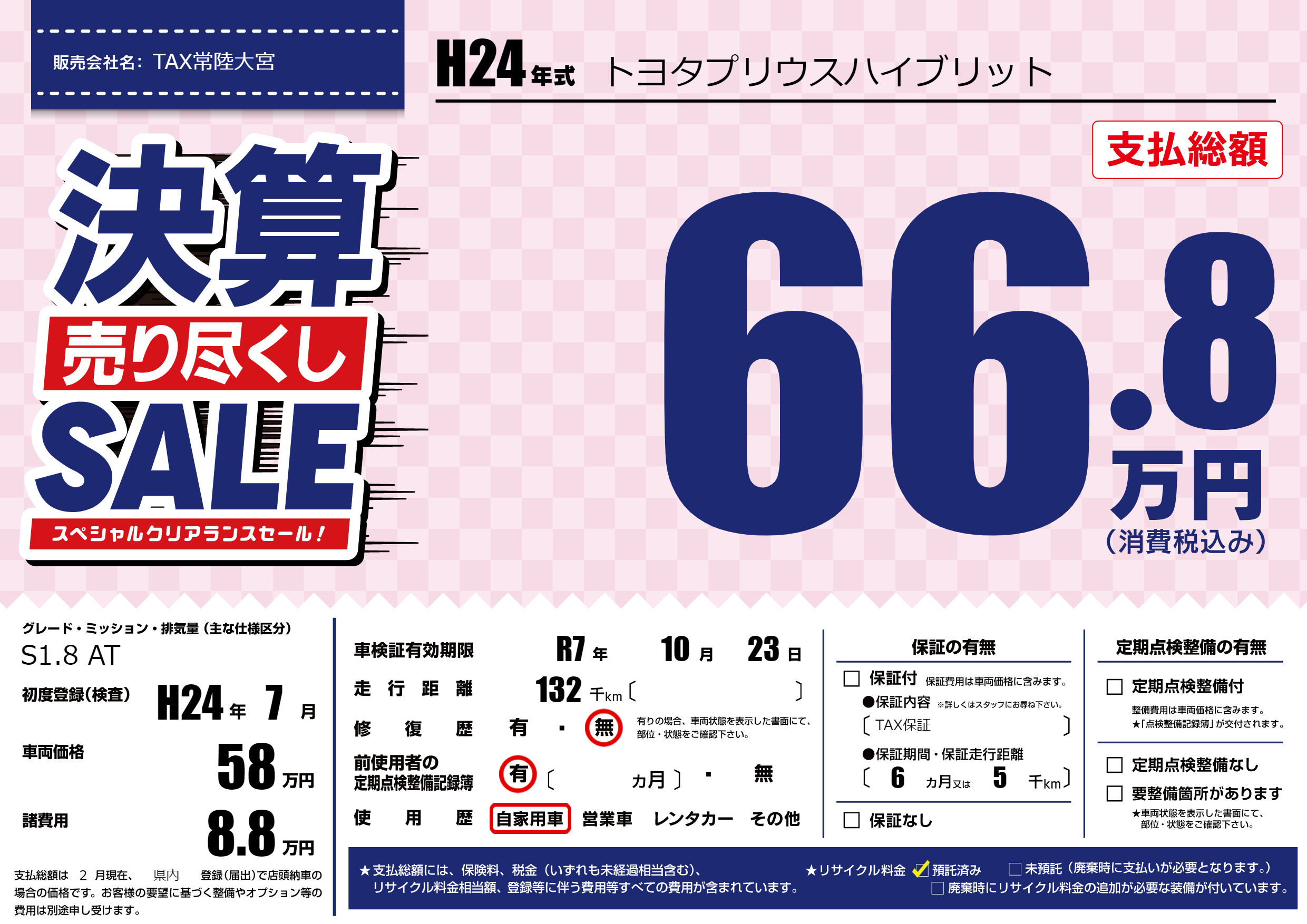 | 車検制限 | R7年 10月 23日 | ||