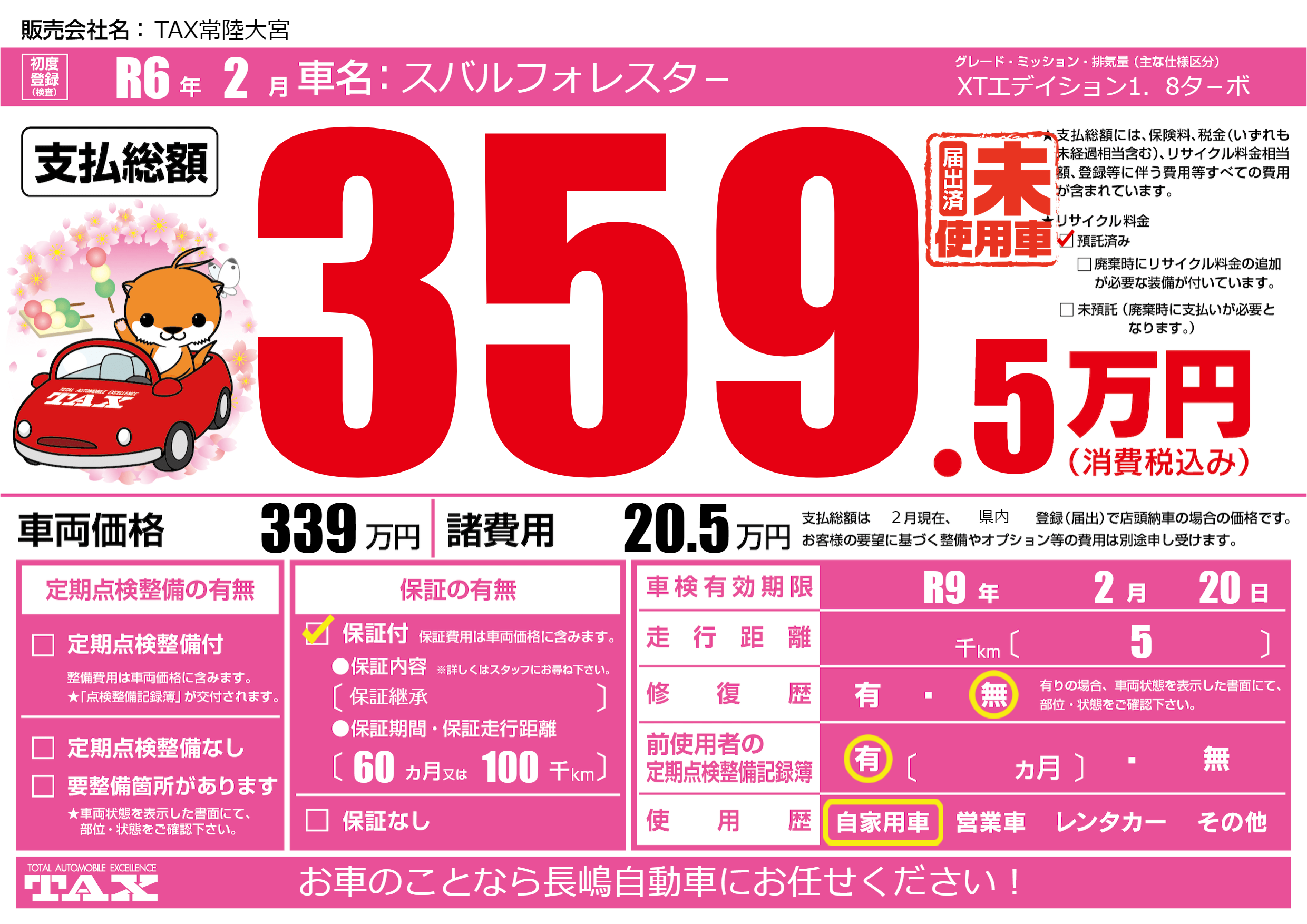| 車検制限 | R9年 2月 20日 | ||