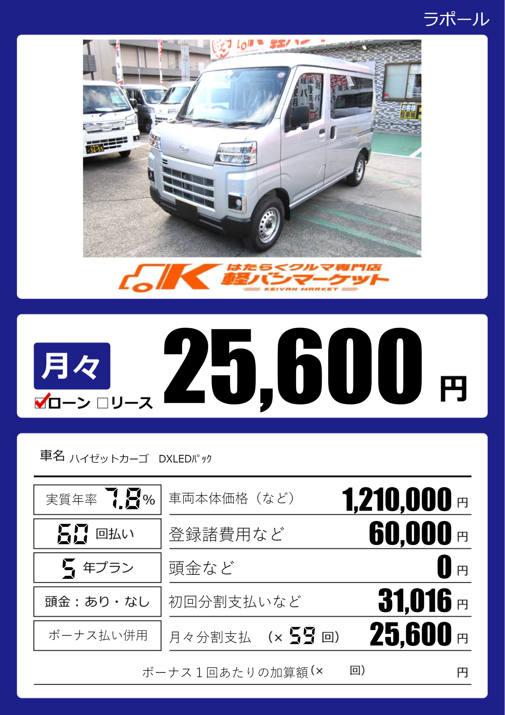 | 車名 | ハイゼットカーゴ DXLEDパック | グレード ミッション 排気量 |