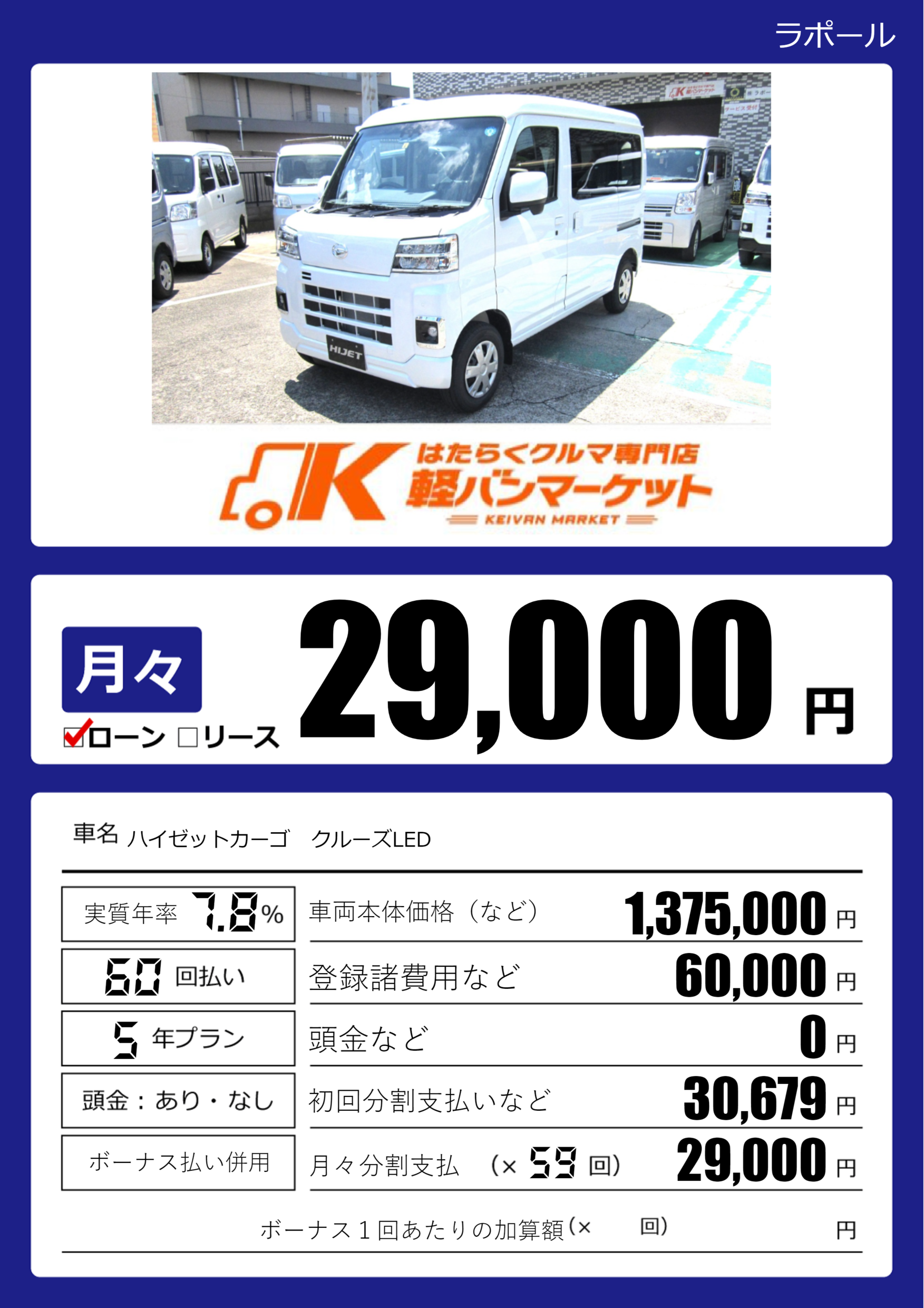 | 車名 | ハイゼットカーゴ クルーズLED | グレード ミッション 排気量 |