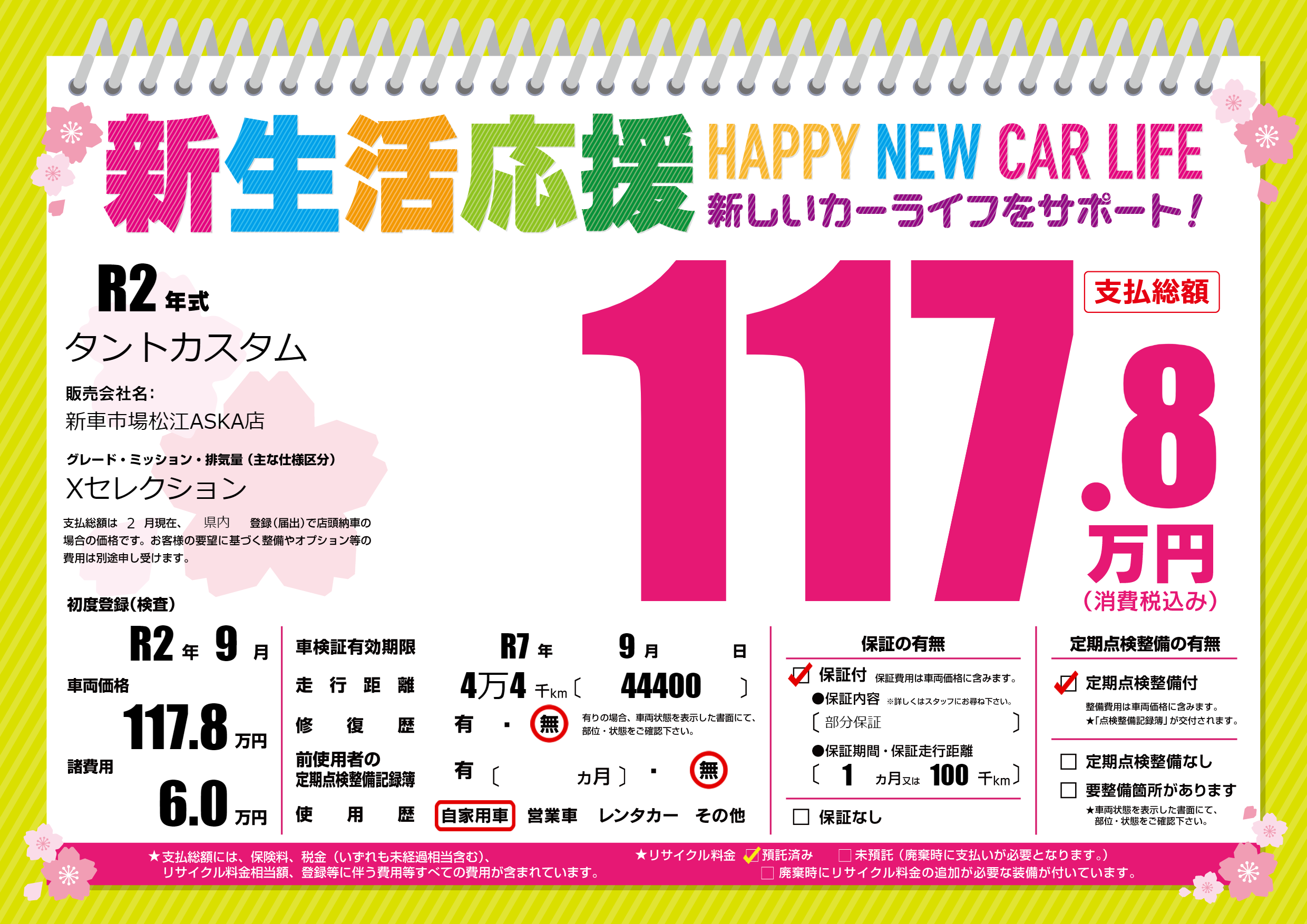 | 車名 | タントカスタム | グレード ミッション 排気量 |