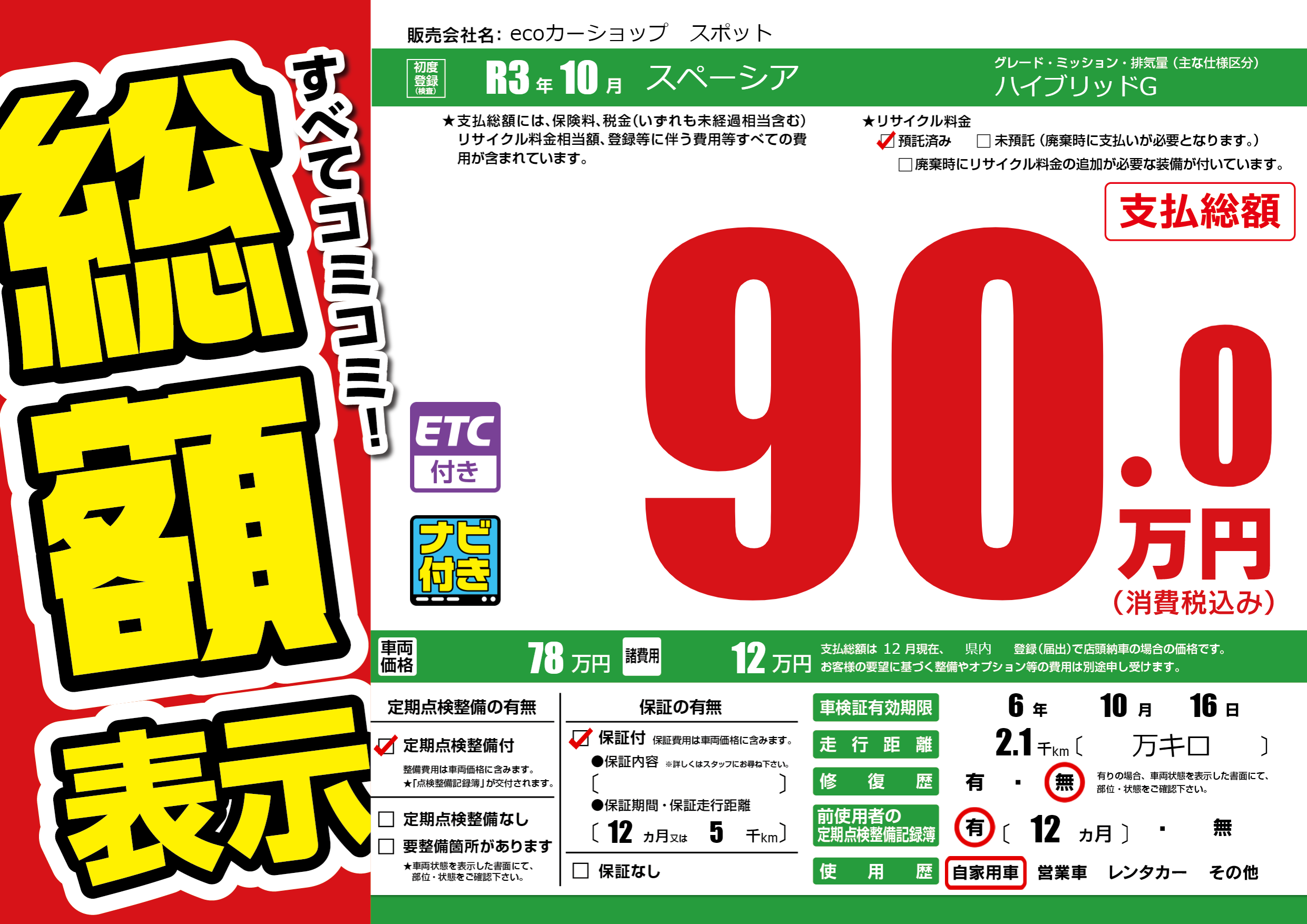 | 定期点検整備 | 定期点検整備あり | ||