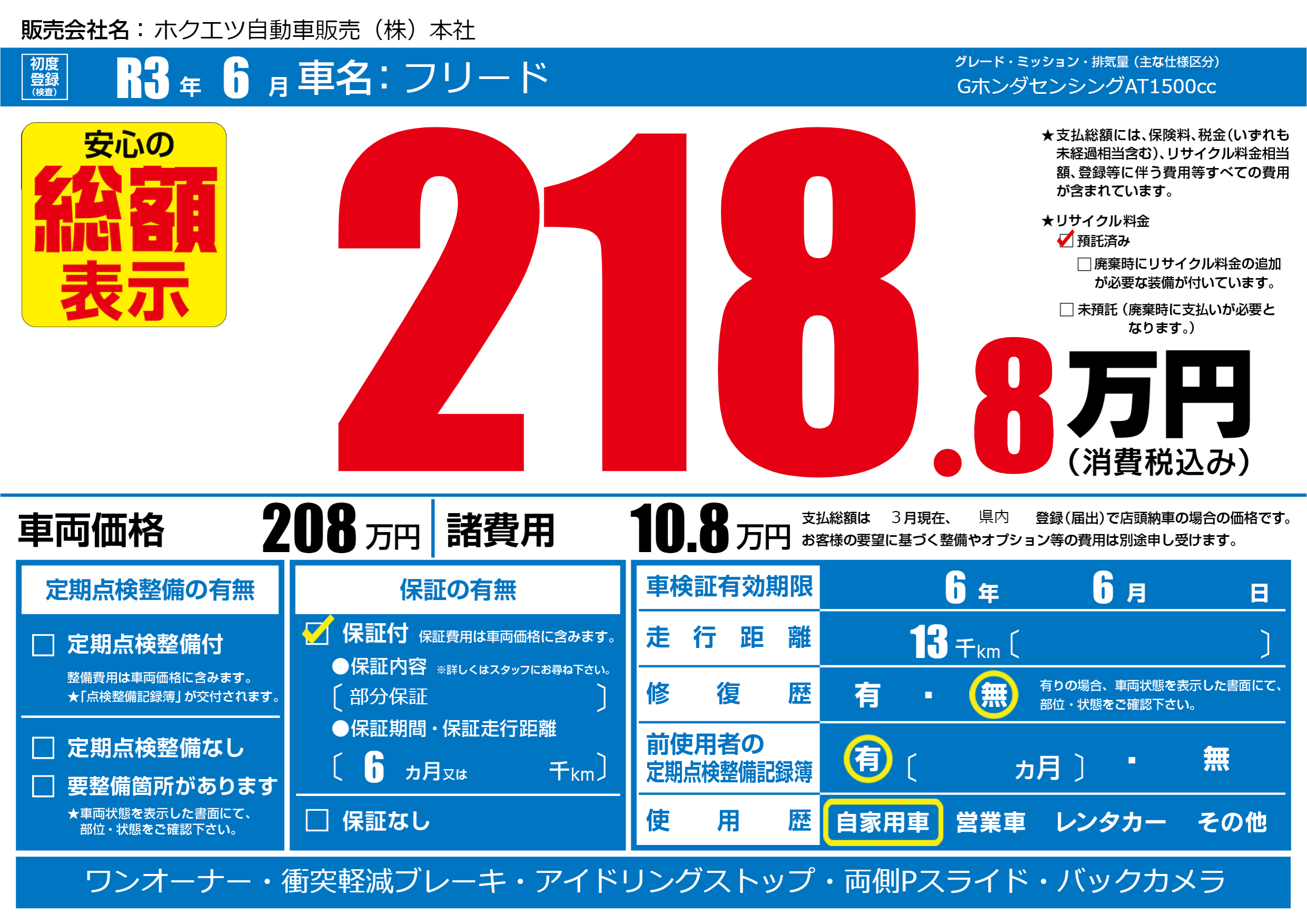 保証付き 保証内容(部分保証) 6ヶ月または()千kmまで |