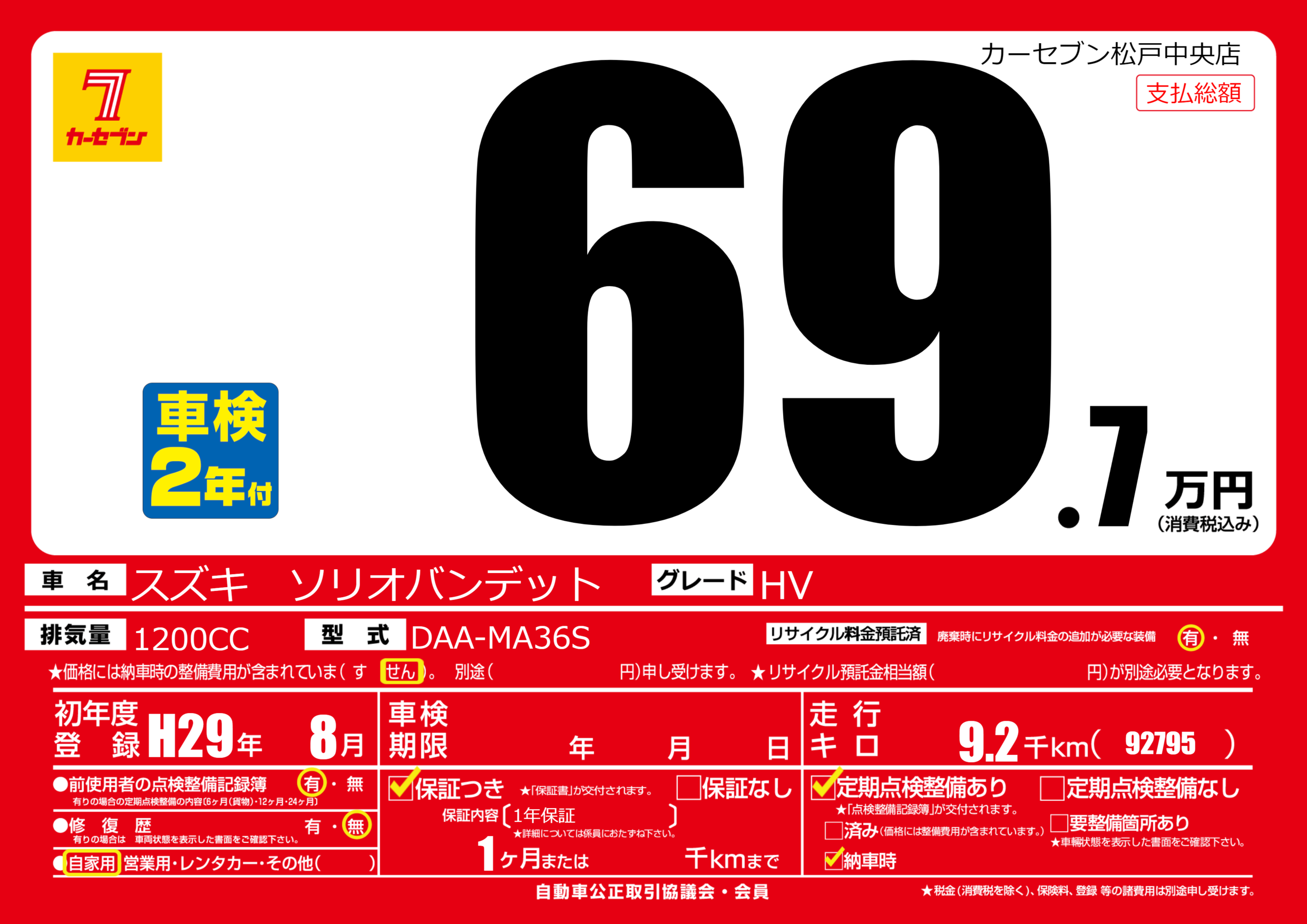 | 定期点検整備 | 定期点検整備あり 納車時あり | ||