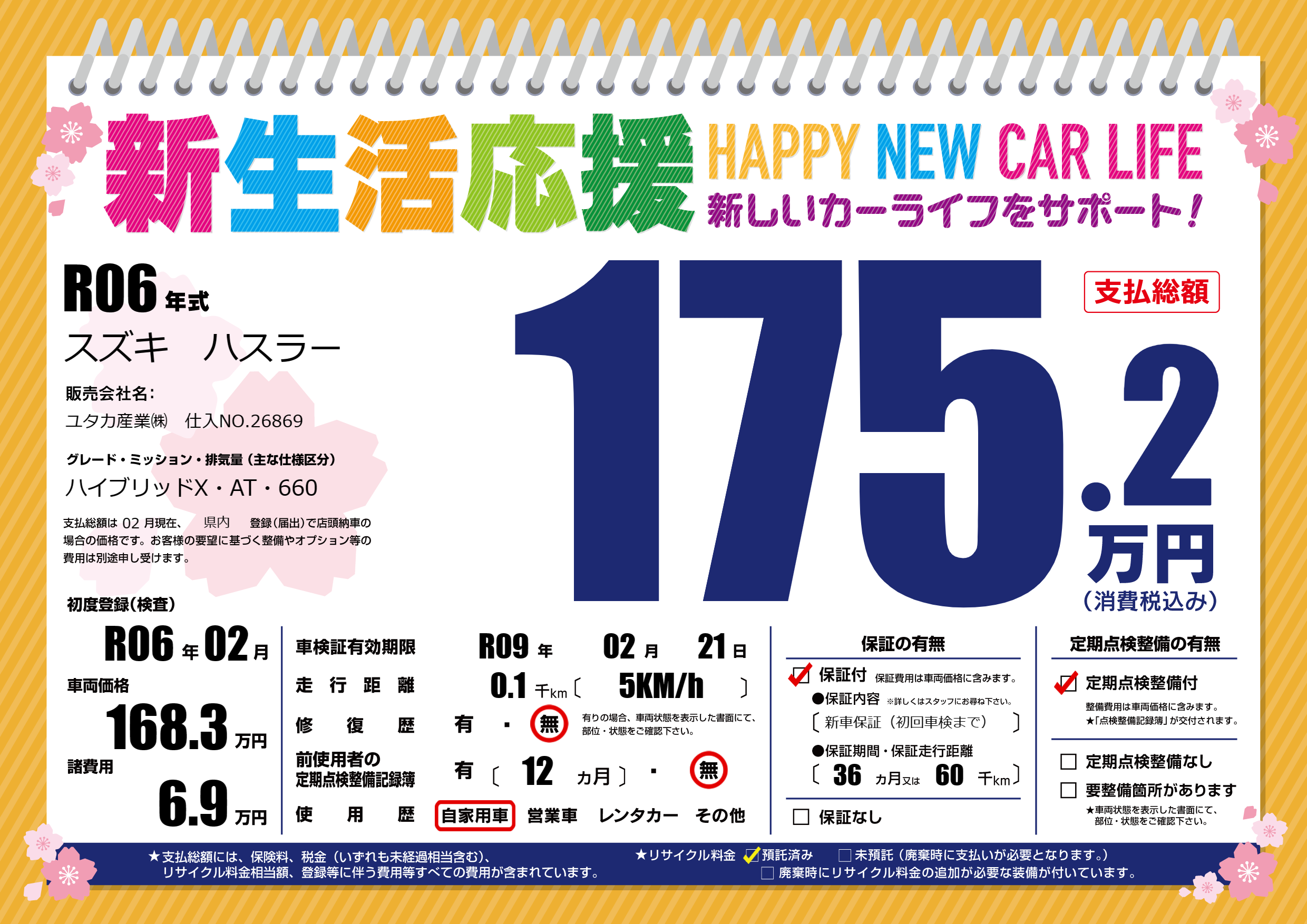 | 走行キロ | - | 初年度登録 | R06年02月 |