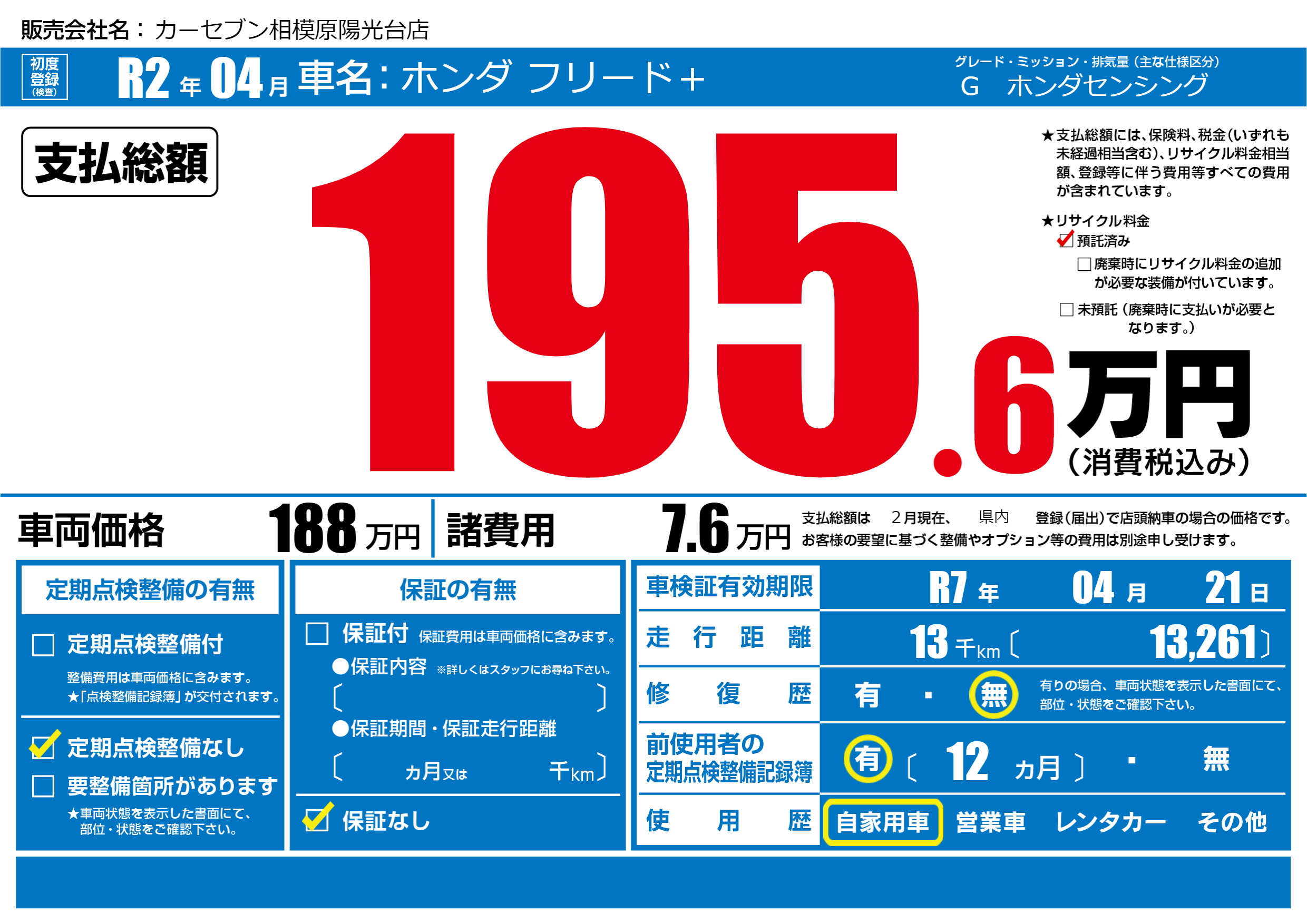 | 車検制限 | R7年 04月 21日 | ||