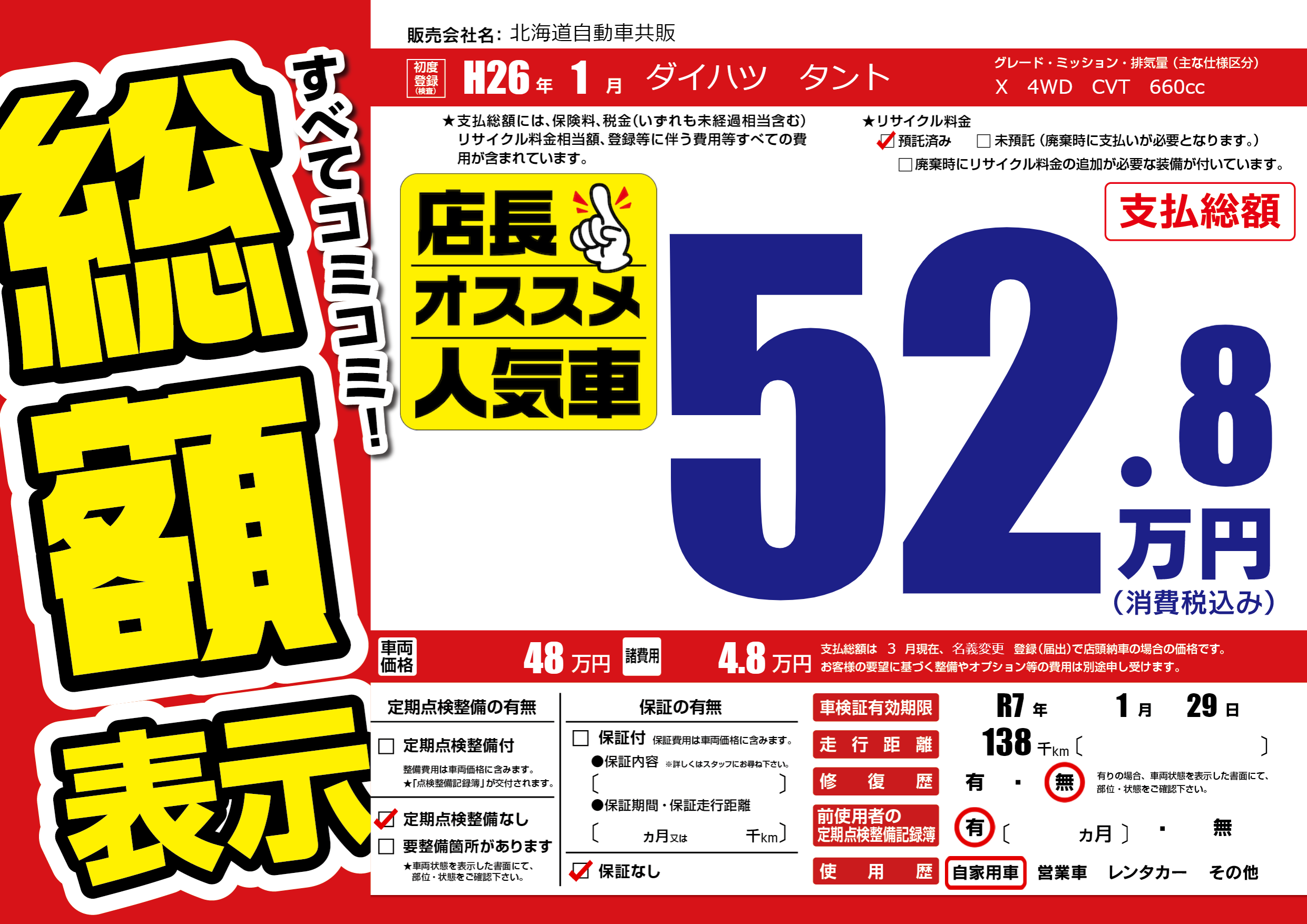 なし | 車検制限 | R7年1月29月 |