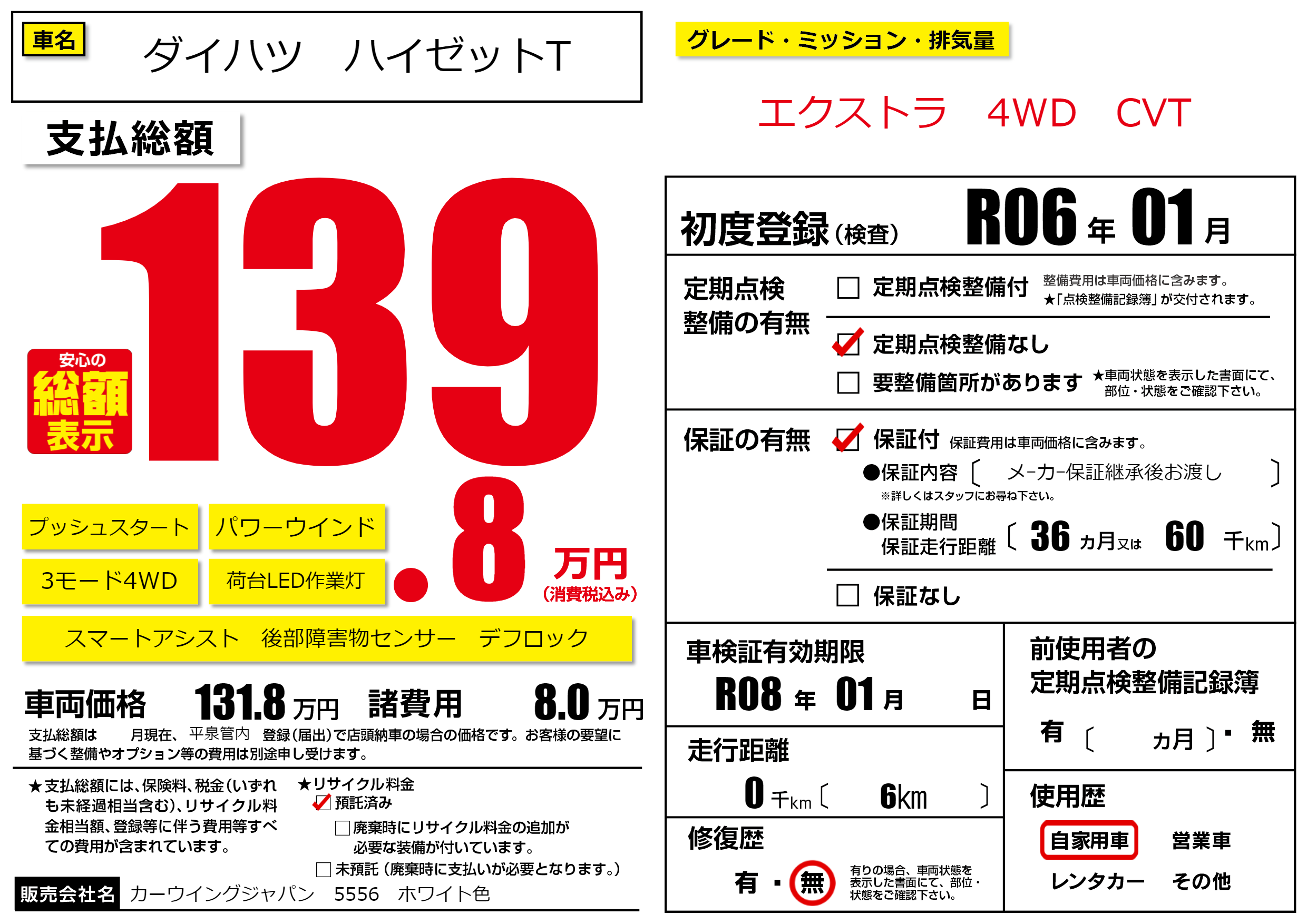 | 車検制限 | R08年 01月 - 日 | ||