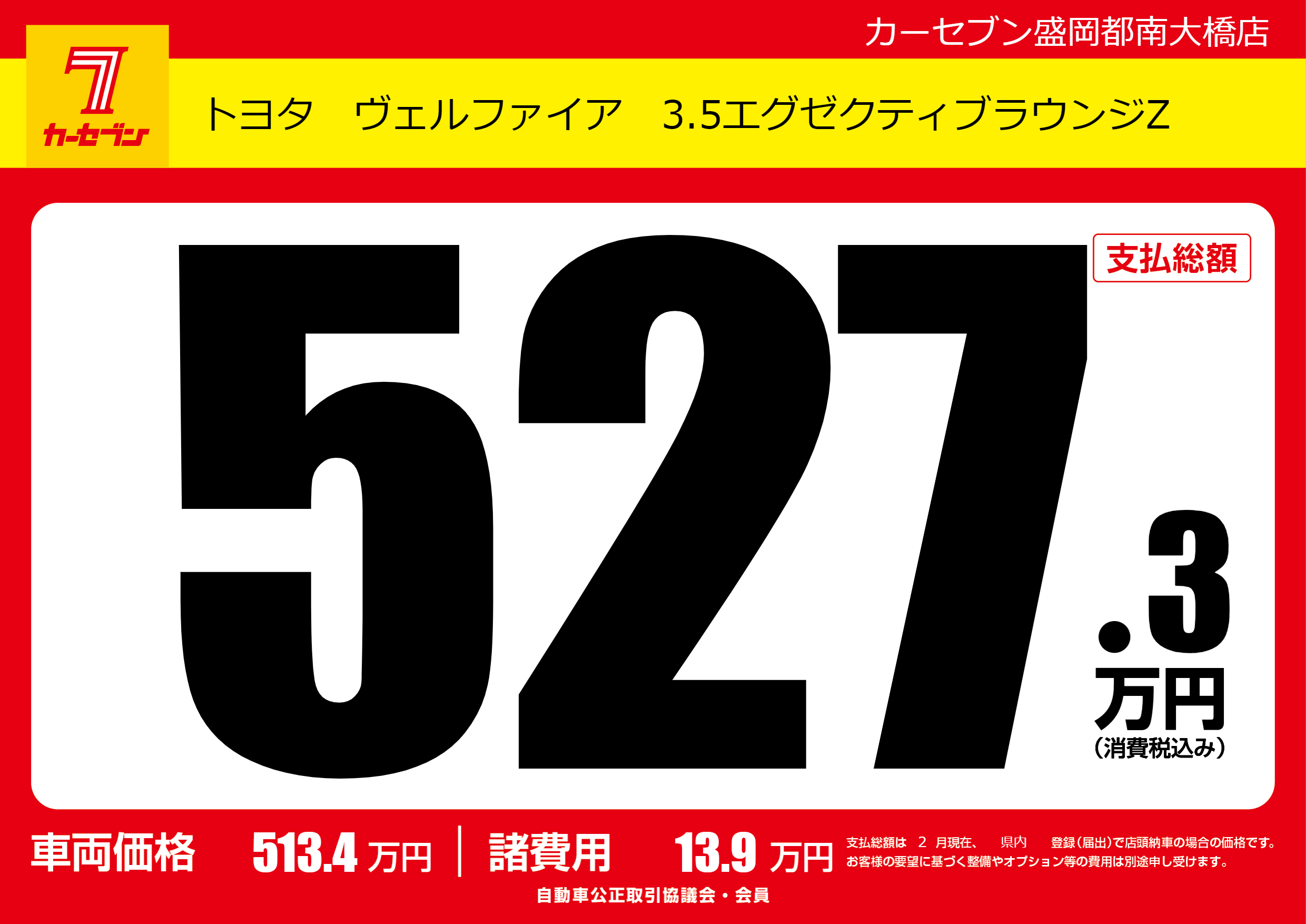 | 車名 | トヨタ ヴェルファイア 3.5エグゼクティブラウンジZ | グレード ミッション 排気量 |