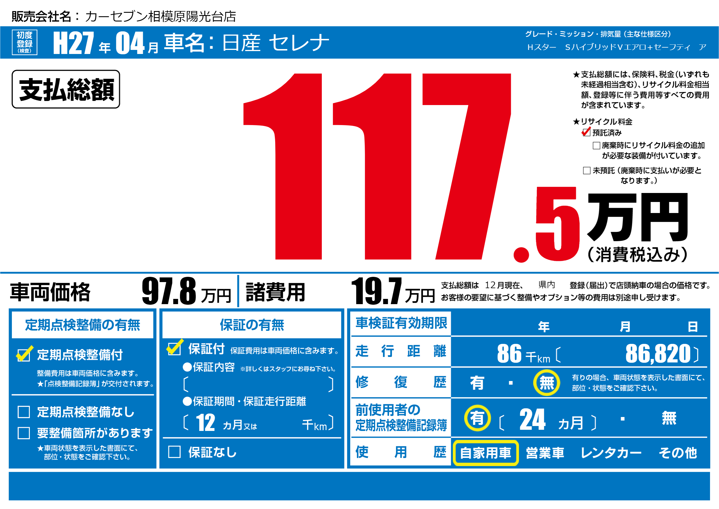 | 定期点検整備 | 定期点検整備あり | ||