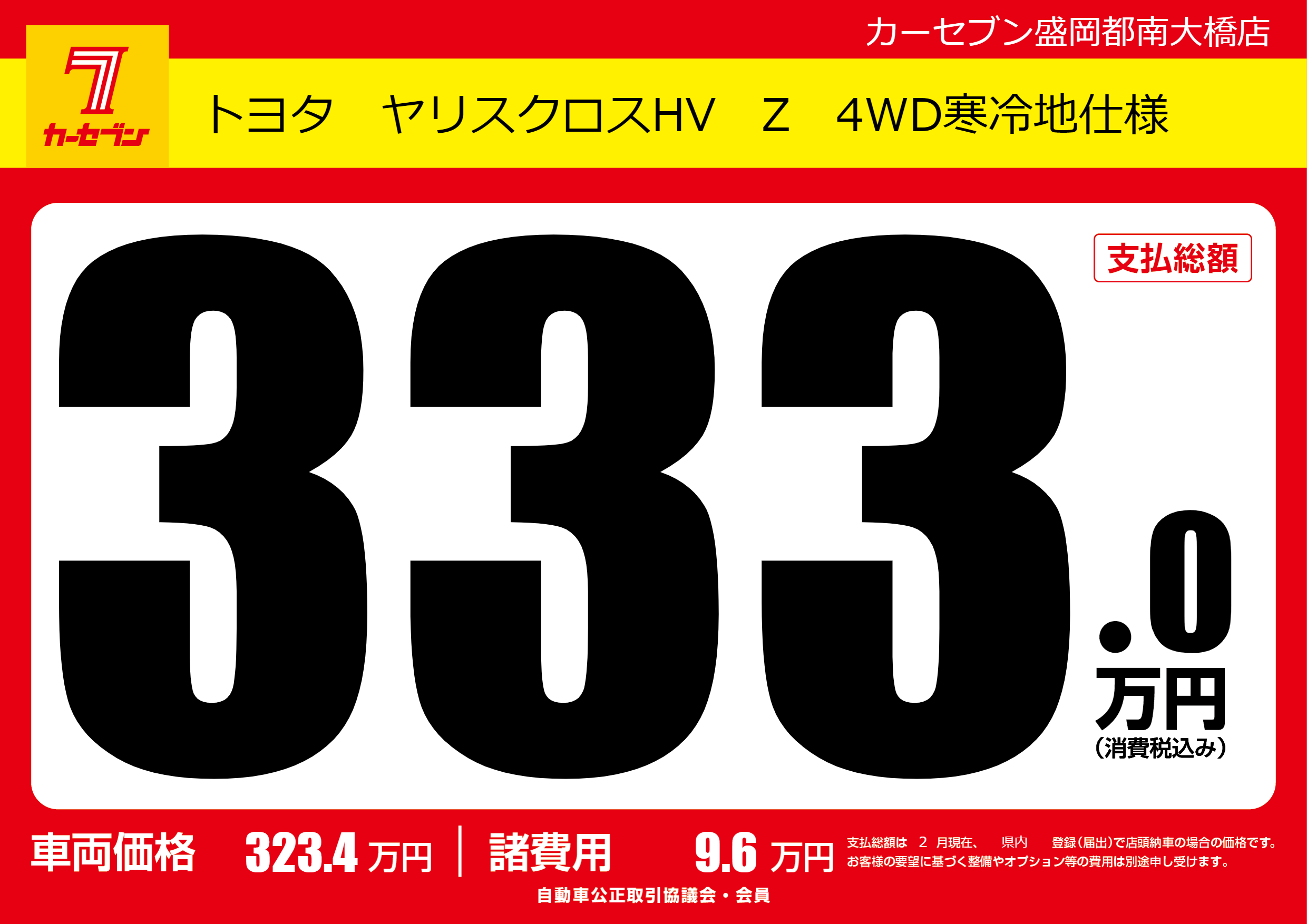 トヨタ ヤリスクロスHV Z 4WD寒冷地仕様