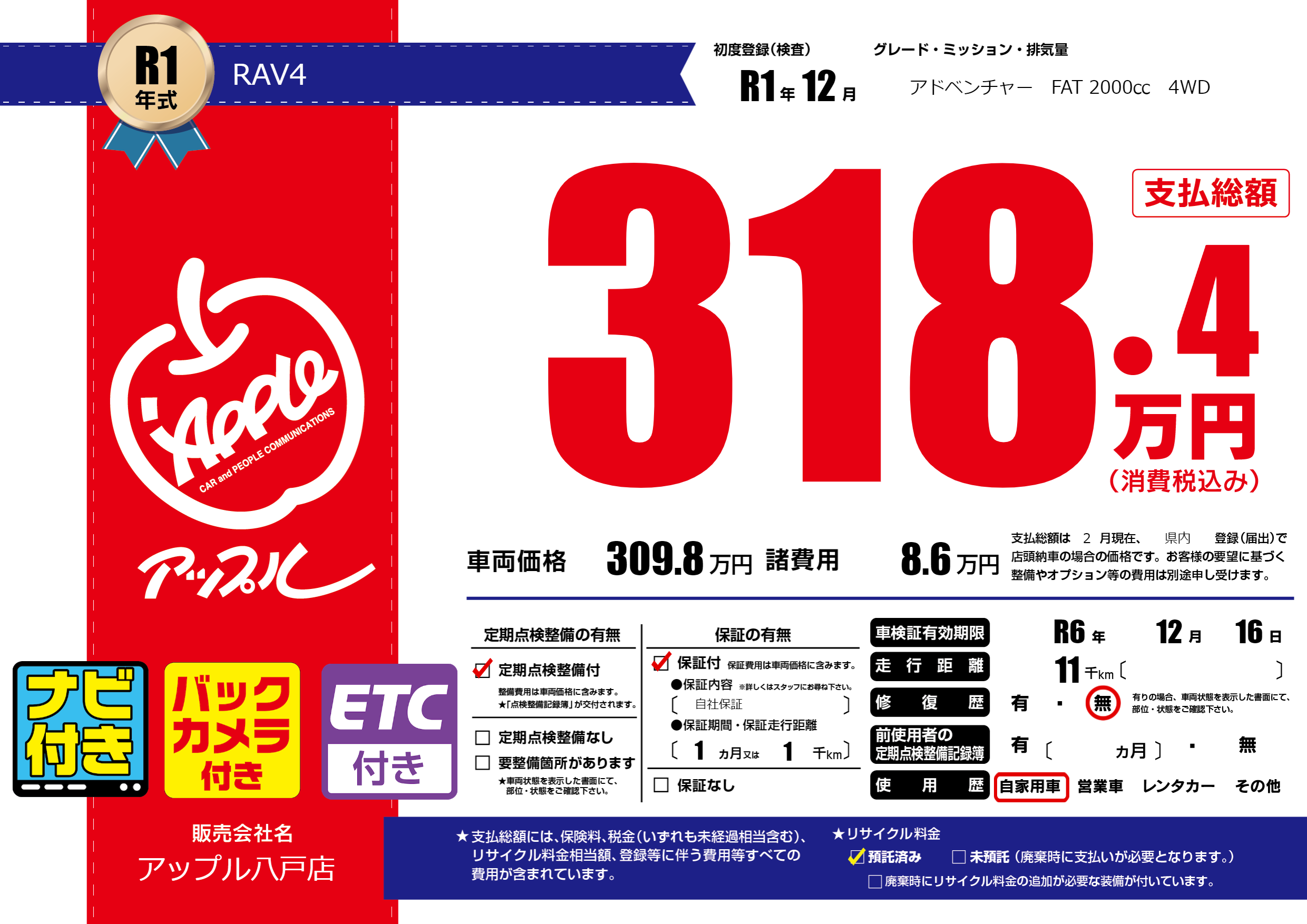 | 車検制限 | R6年 12月 16日 | ||