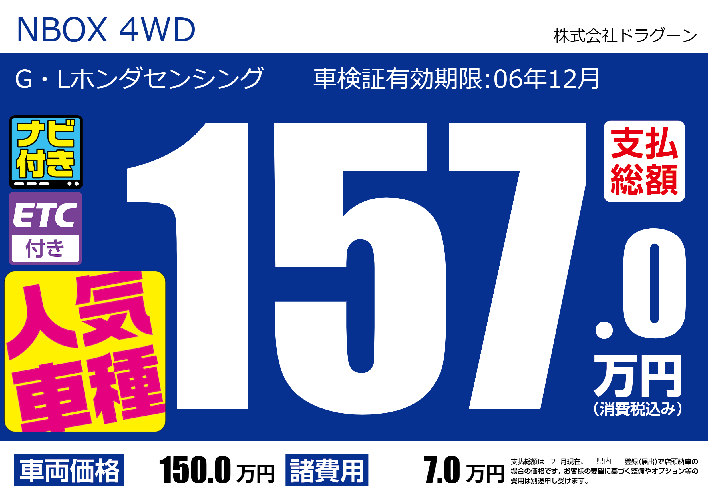 | 車名 | NBOX 4WD | グレード ミッション 排気量 |