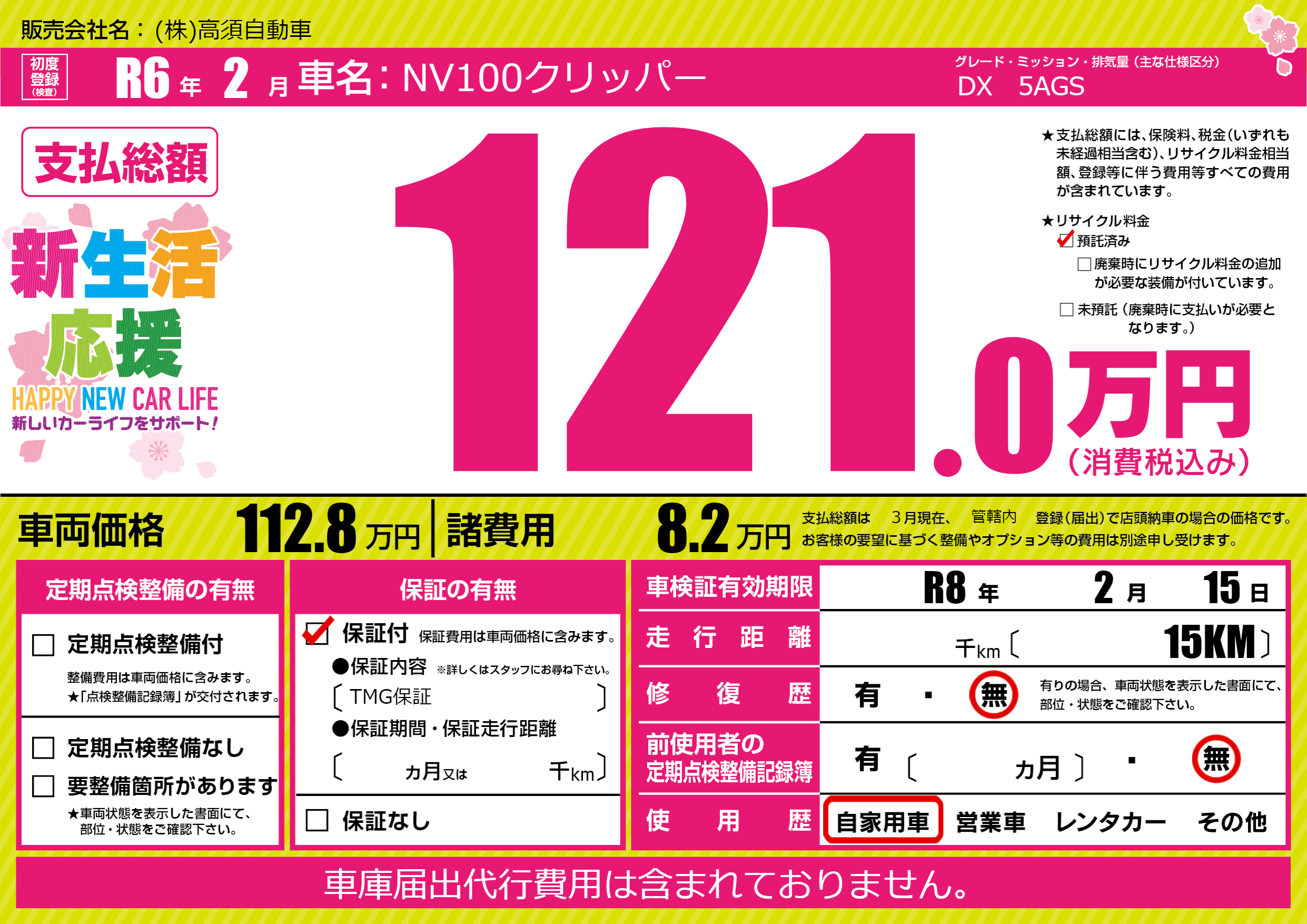 | 車検制限 | R8年 2月 15日 | ||