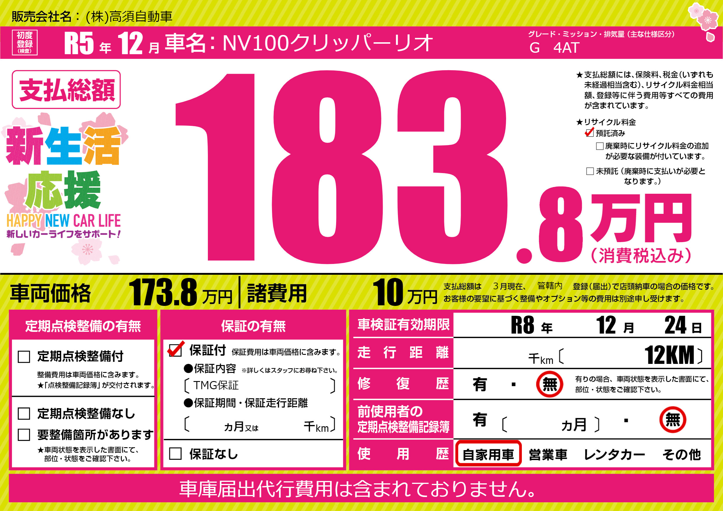 保証付き 保証内容(TMG保証) ---ヶ月または()千kmまで |