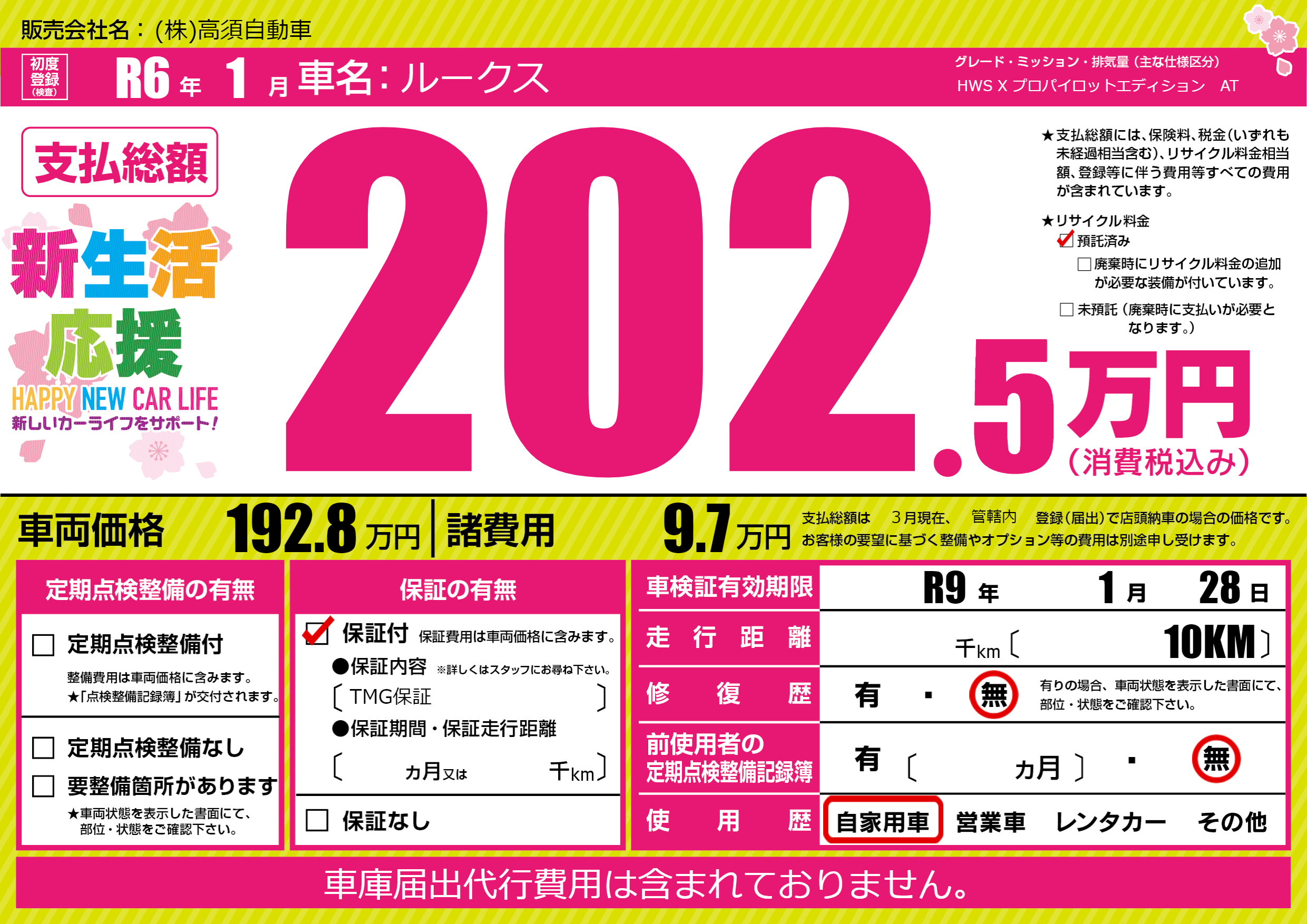 なし | 車検制限 | R9年1月28月 |