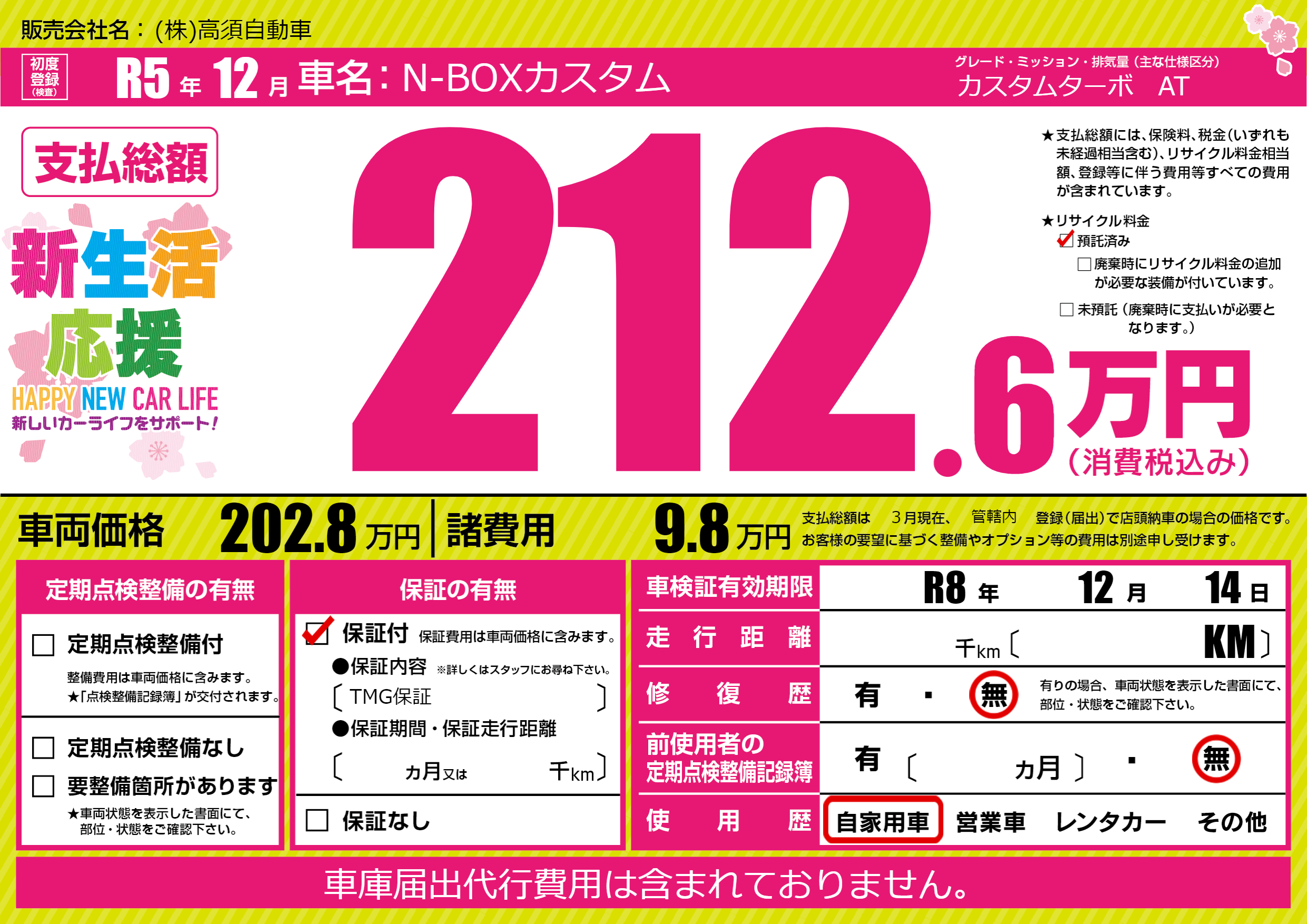 保証付き 保証内容(TMG保証) ---ヶ月または()千kmまで |
